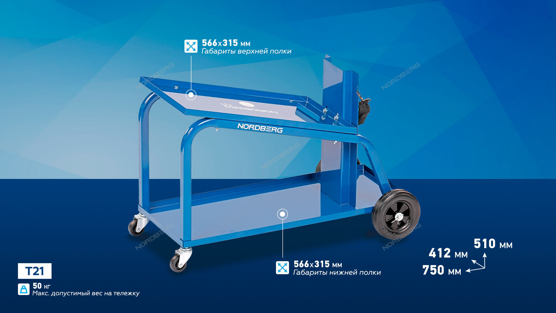Тележка для сварочного аппарата наклонная NORDBERG T21 незаменима в любом месте при проведении сварочных работ: