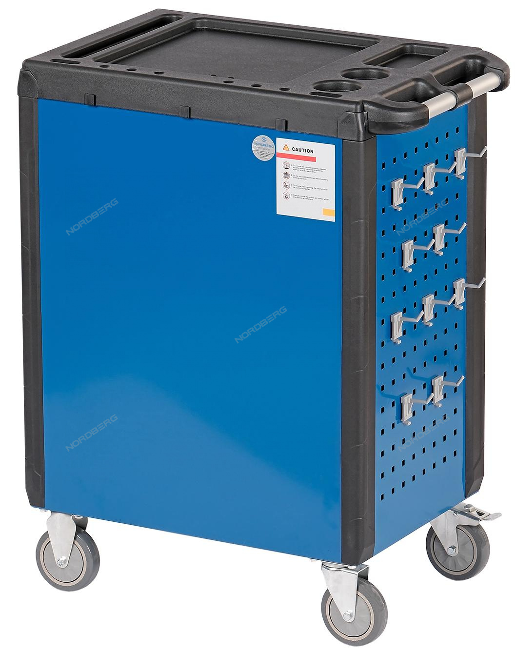 Одна из боковых стенок тележки имеет перфорированную панель, для крепления на ней крючков для инструмента. Крючки идут в комплекте с тележкой.