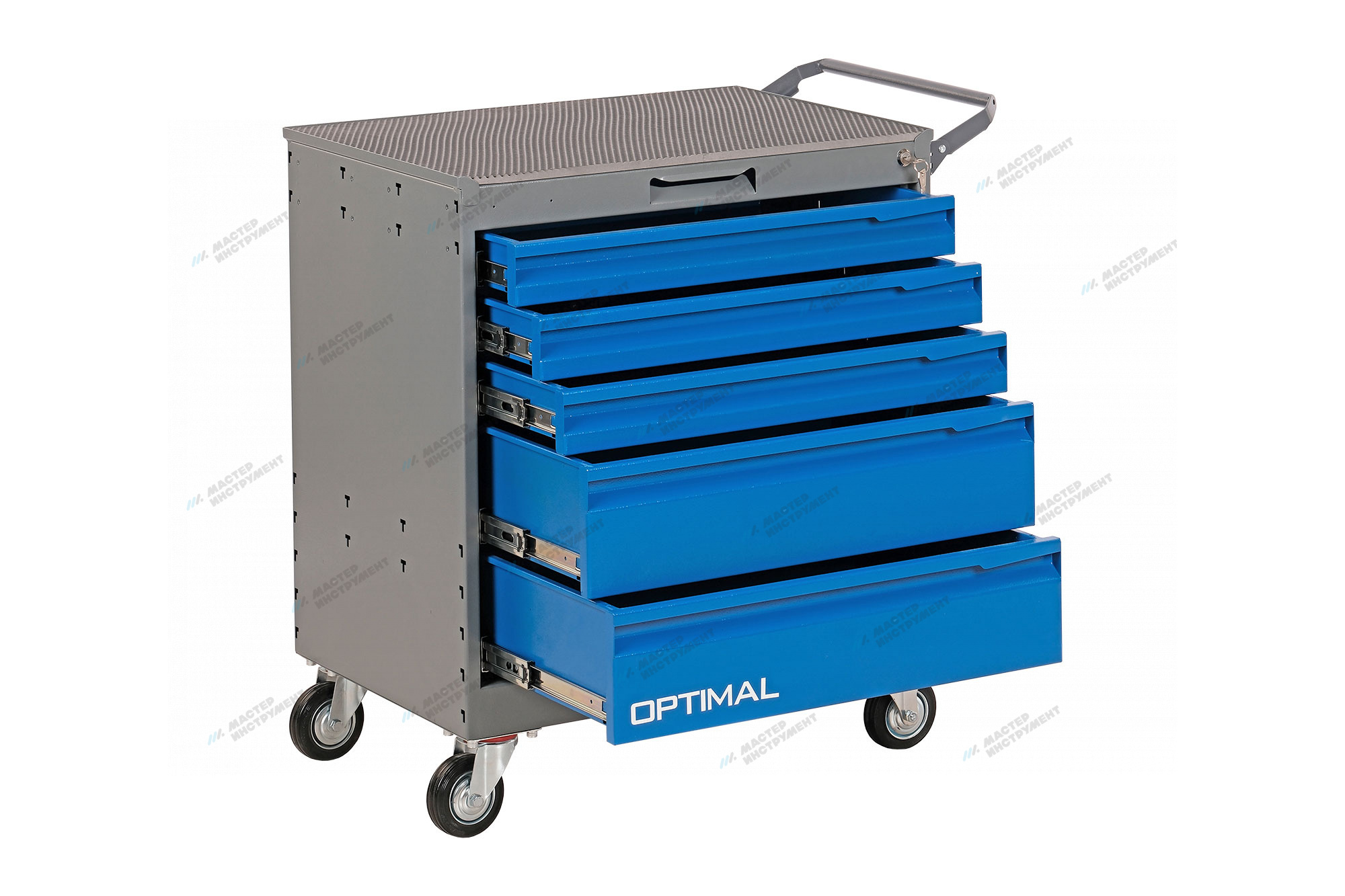 Пять выдвижных ящиков позволяют компактно разместить, хранить и перемещать необходимые инструменты и детали к месту проведения ремонтных работ.