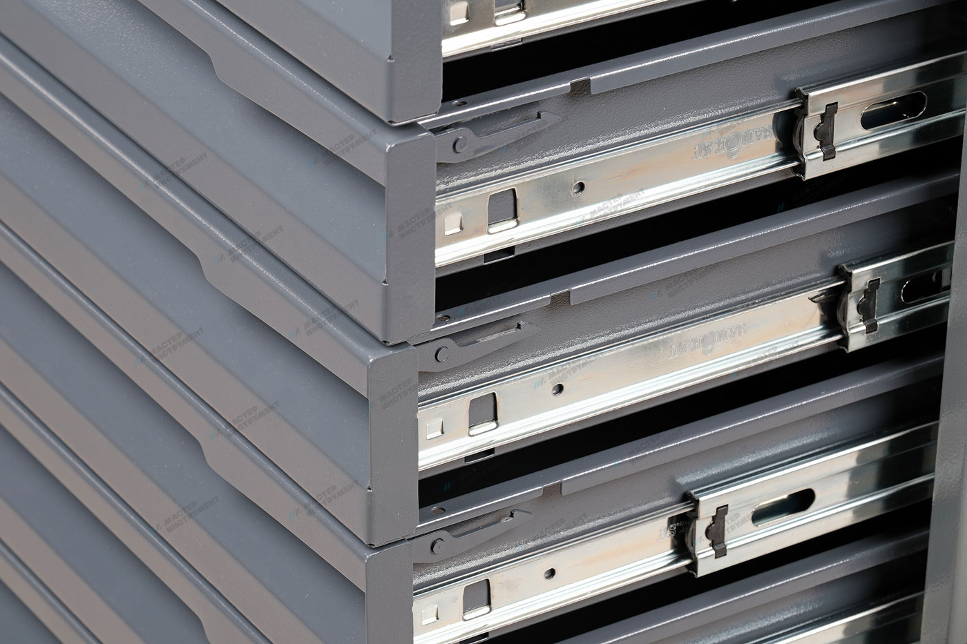 Семь выдвижных ящиков позволяют компактно разместить, хранить и перемещать необходимые инструменты и детали к месту проведения ремонтных работ.