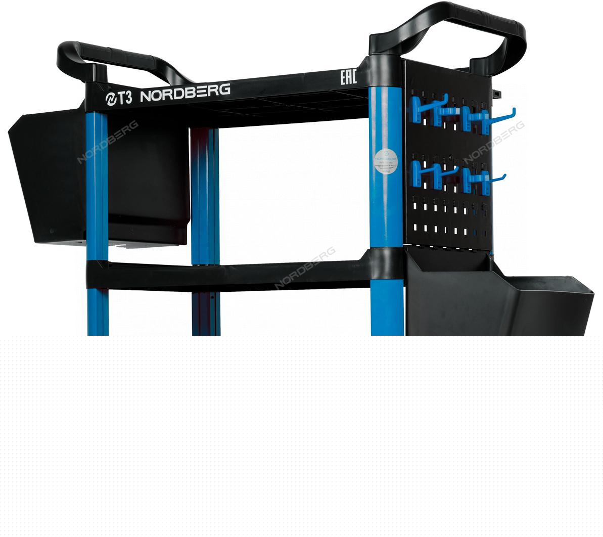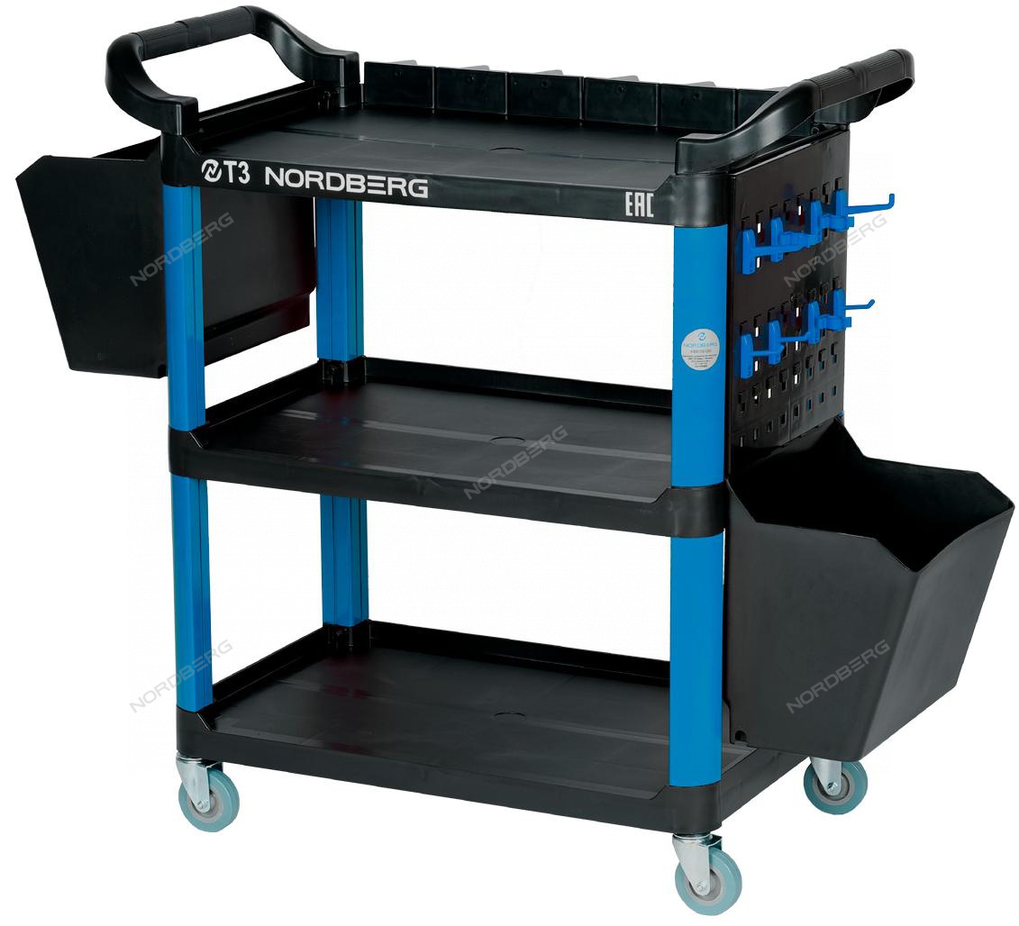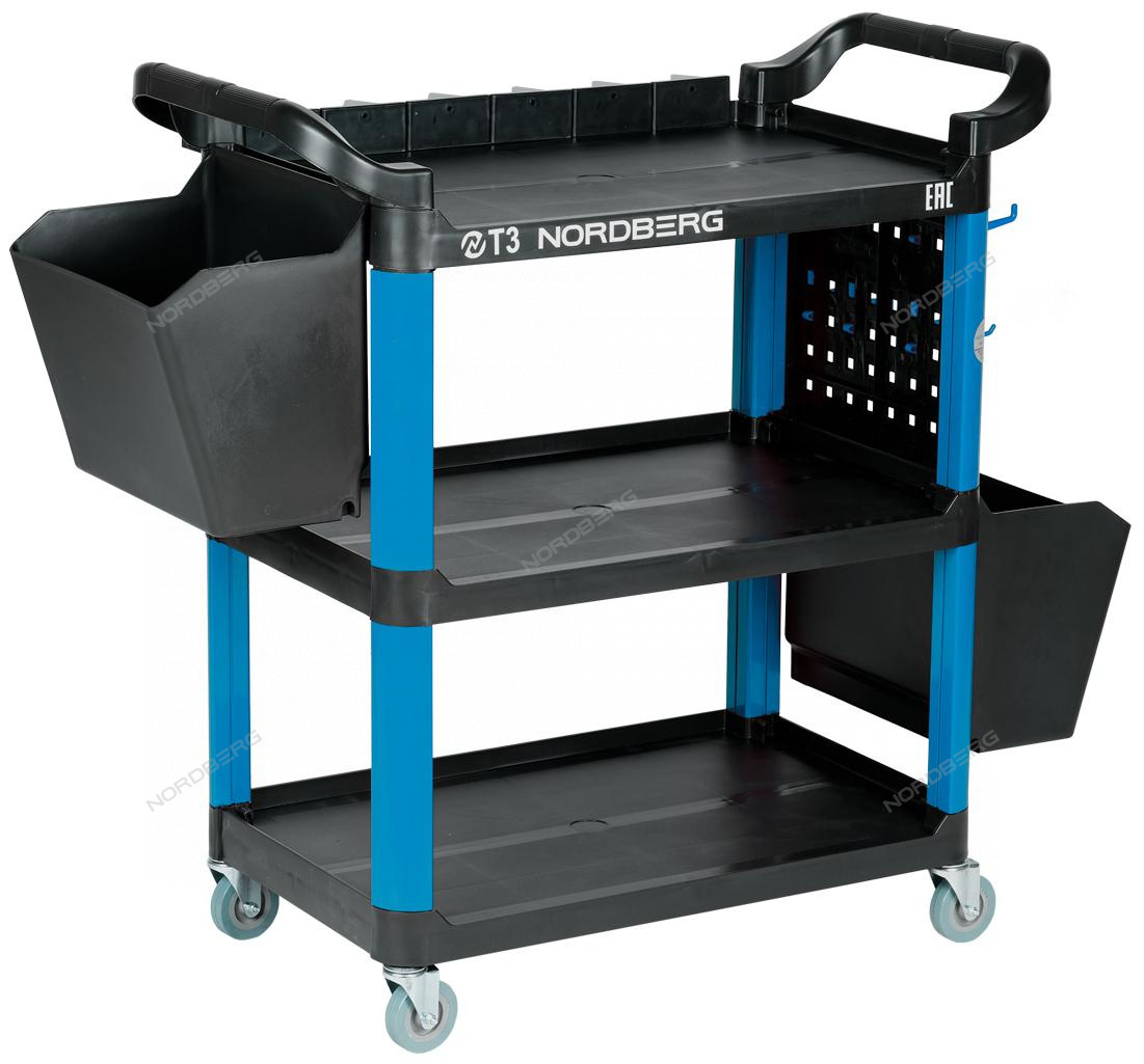 ТЕЛЕЖКА T3 с пластиковыми полками Nordberg T3 для компактного размещения и доставки необходимого инструмента непосредственно к месту проведения работ.