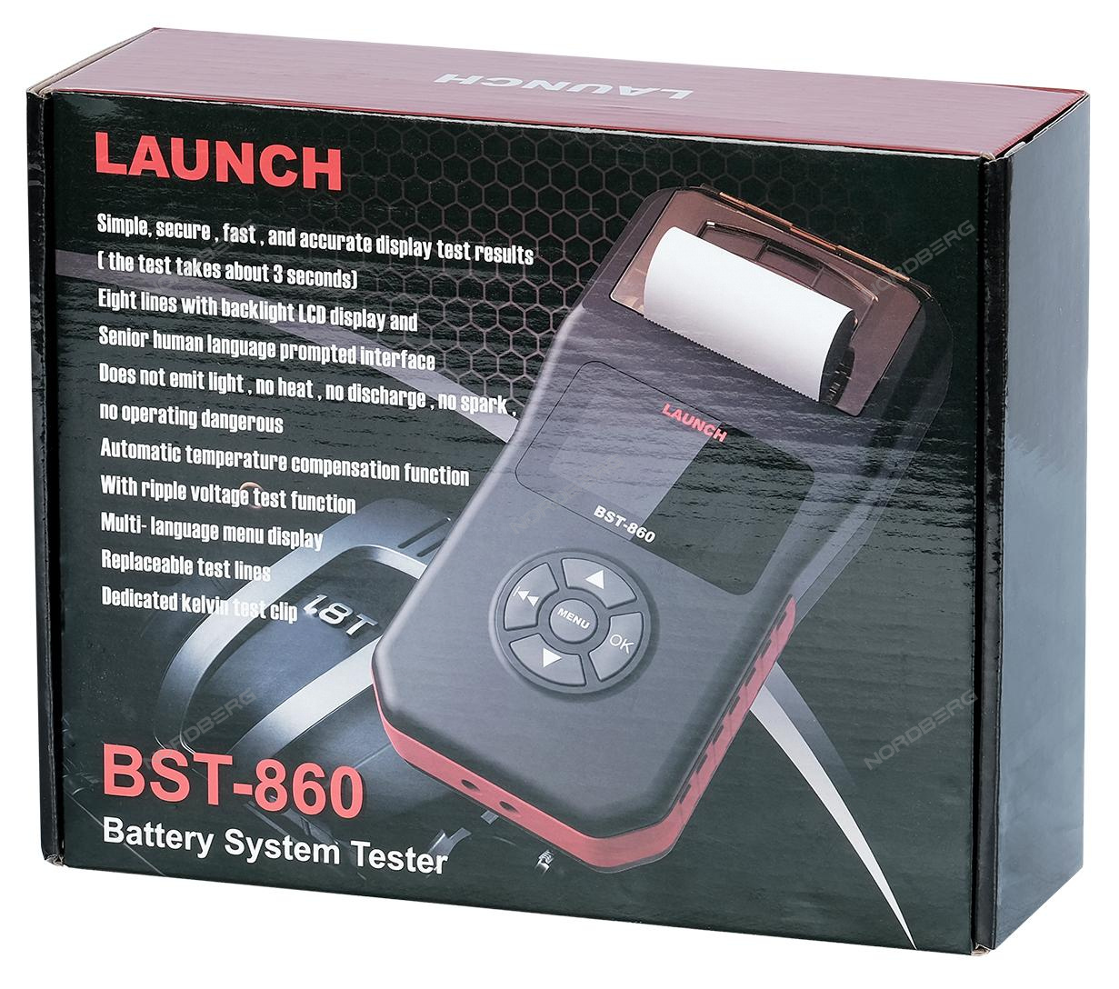 Тестер аккумуляторных батарей Launch BST-860 N37742 - многофункциональный тестер для проверки уровня заряда и состояния аккумуляторных батарей с напряжением 6В, 12В и 24В. С его помощью вы сможете проверить не только состояние АКБ, а так-же системы пуска и заряда автомобилей и другой техники.