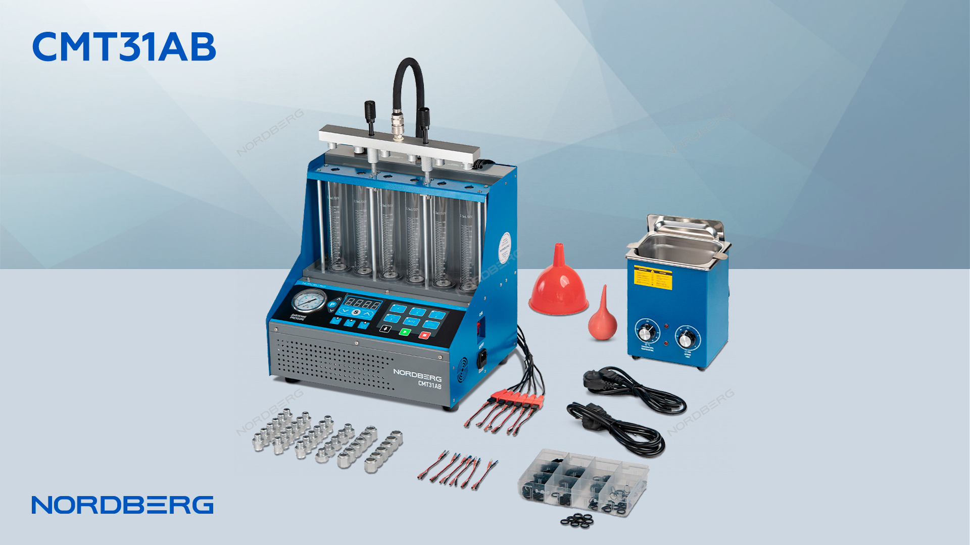 Установка NORDBERG CMT31AB создает оптимальные условия для тестирования форсунок на производительность, производит их очистку, что позволит улучшить работу двигателя, снизить расход топлива и увеличить срок службы топливных форсунок.