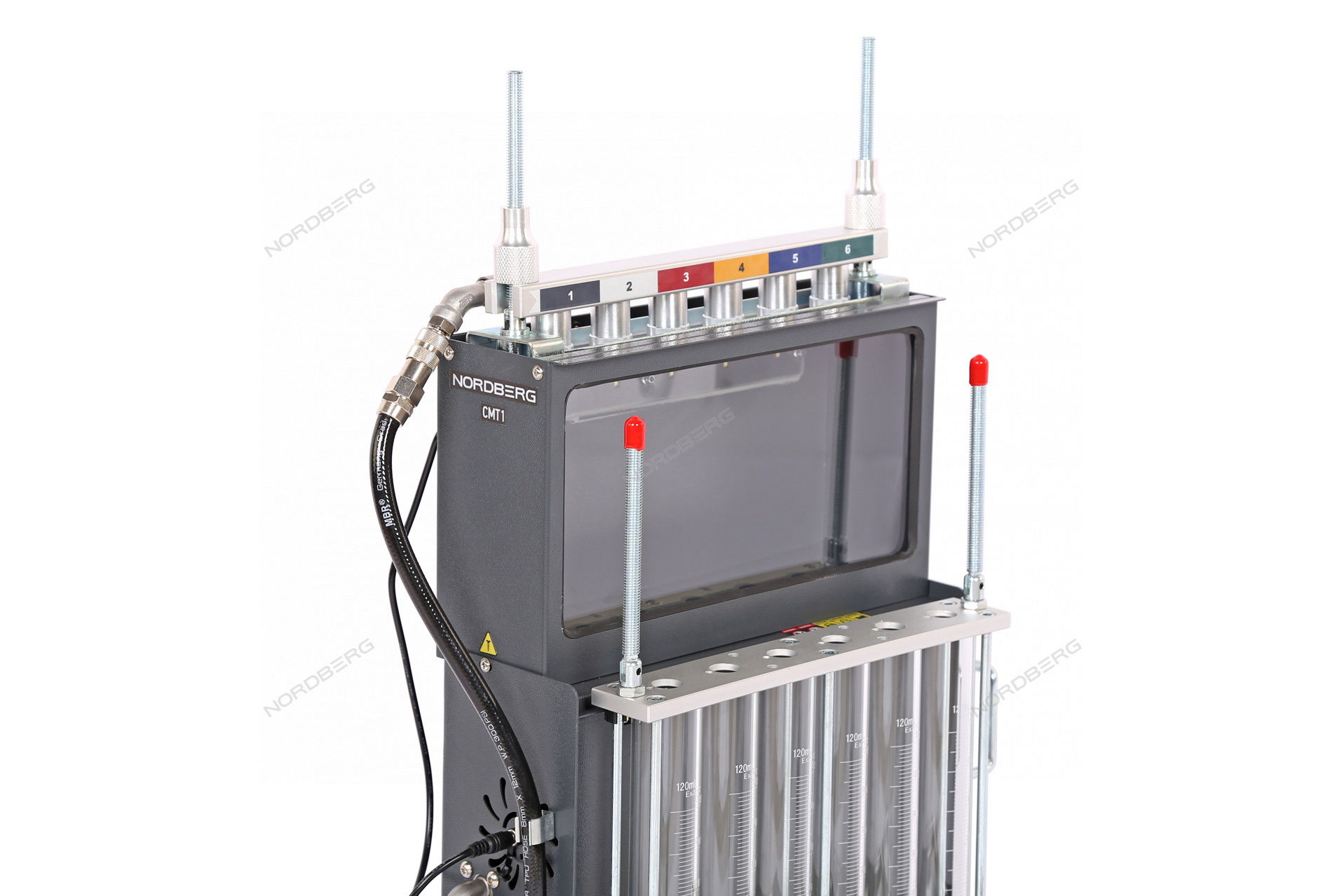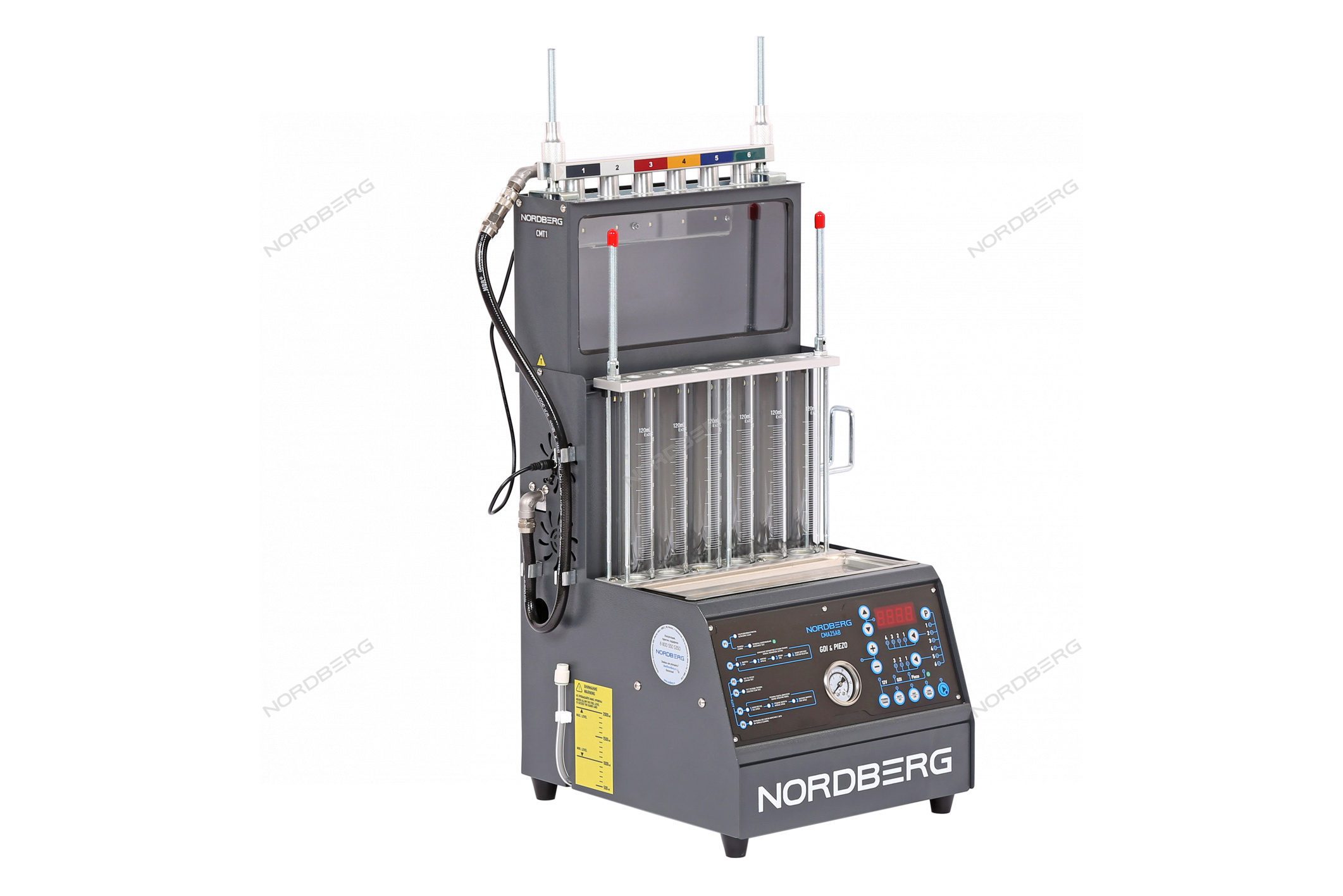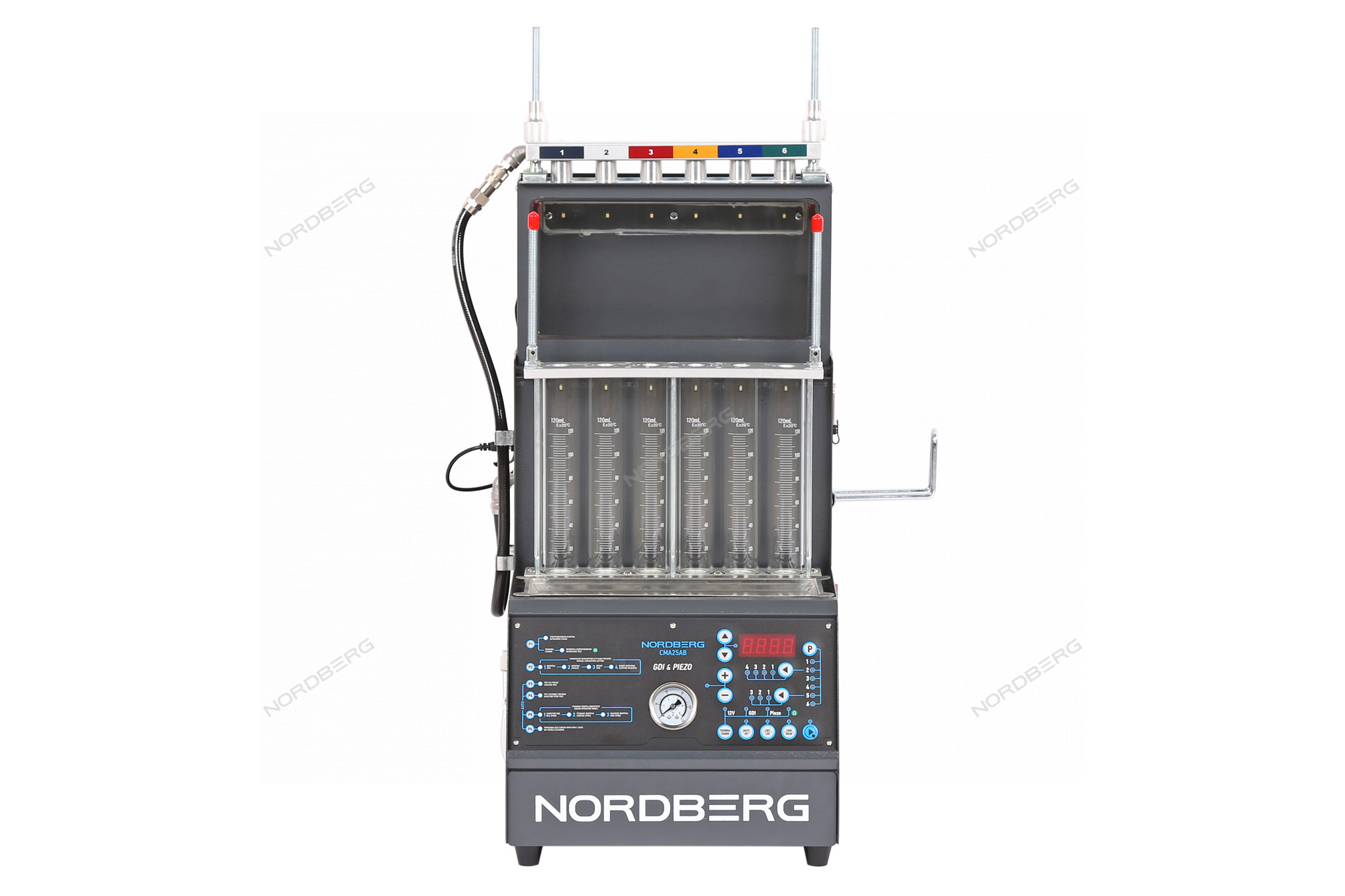 6 форсунок может быть протестировано или очищено одновременно, что значительно повышает эффективность работы, а кронштейн для УЗ-ванны позволяет одновременно устанавливать до 12 форсунок.