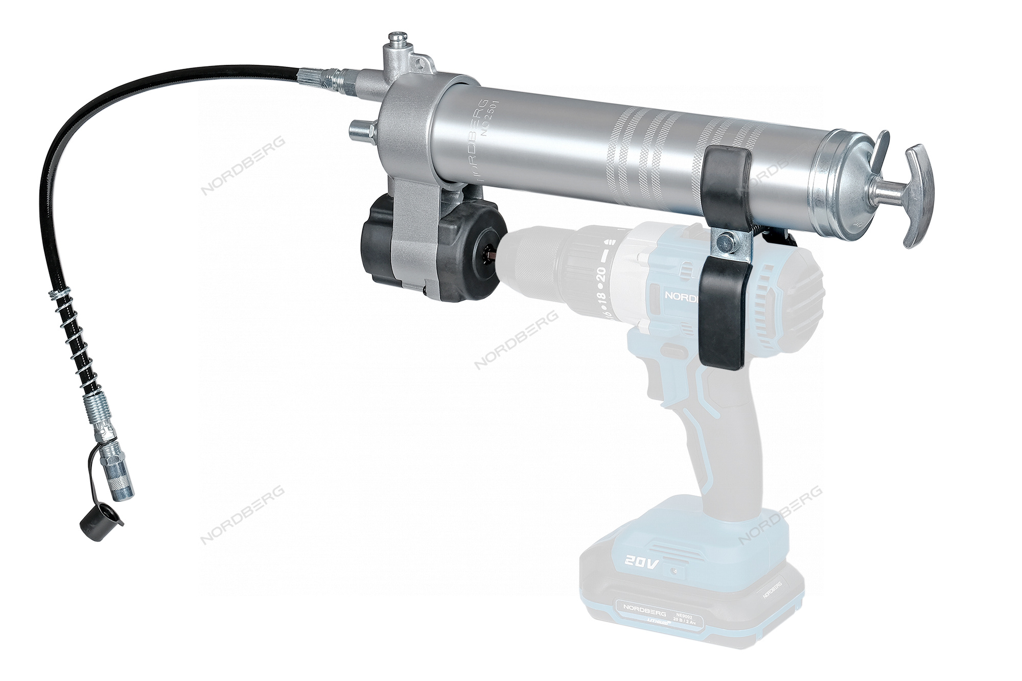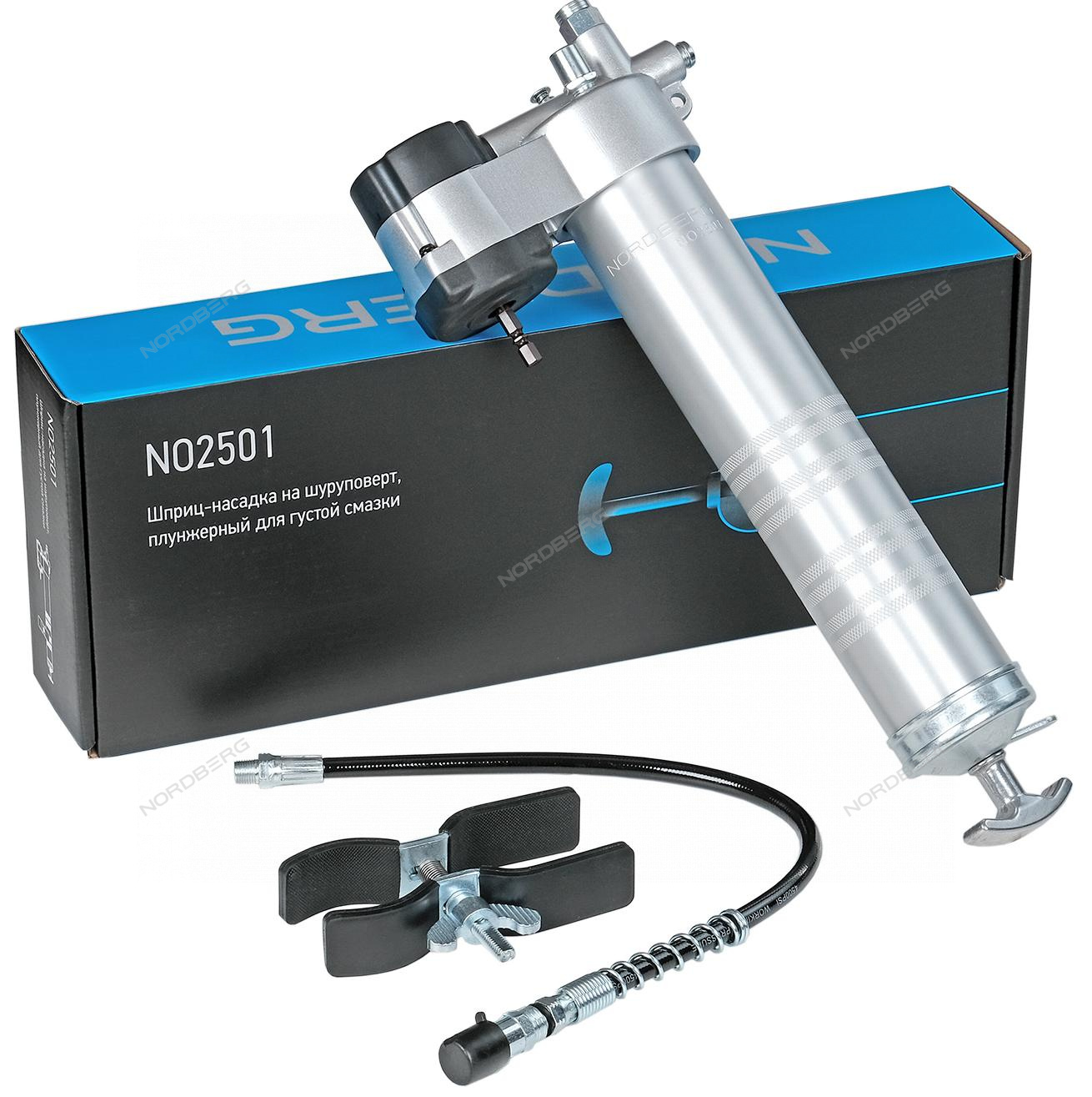 Шприц-насадка на шуруповерт, плунжерный для густой смазки, 400мл NORDBERG NO2501