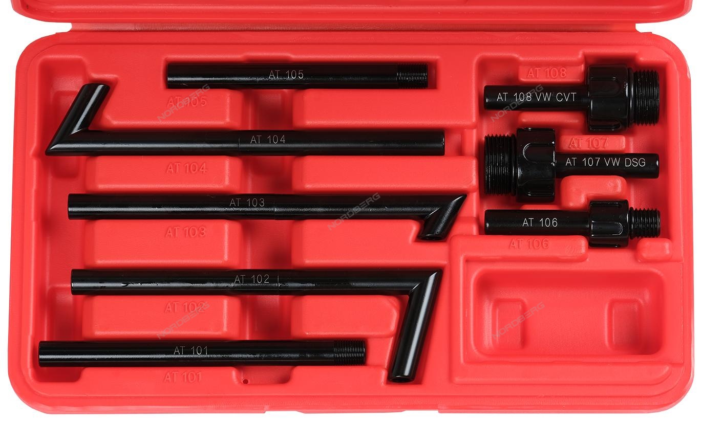 Набор для ручной замены масла в АКПП, 9 предметов NORDBERG N4007K. Предназначен для заправки маслом АКПП (автоматическая коробка переключения передач). Применяется в автосервисах и на станциях технического обслуживания.
