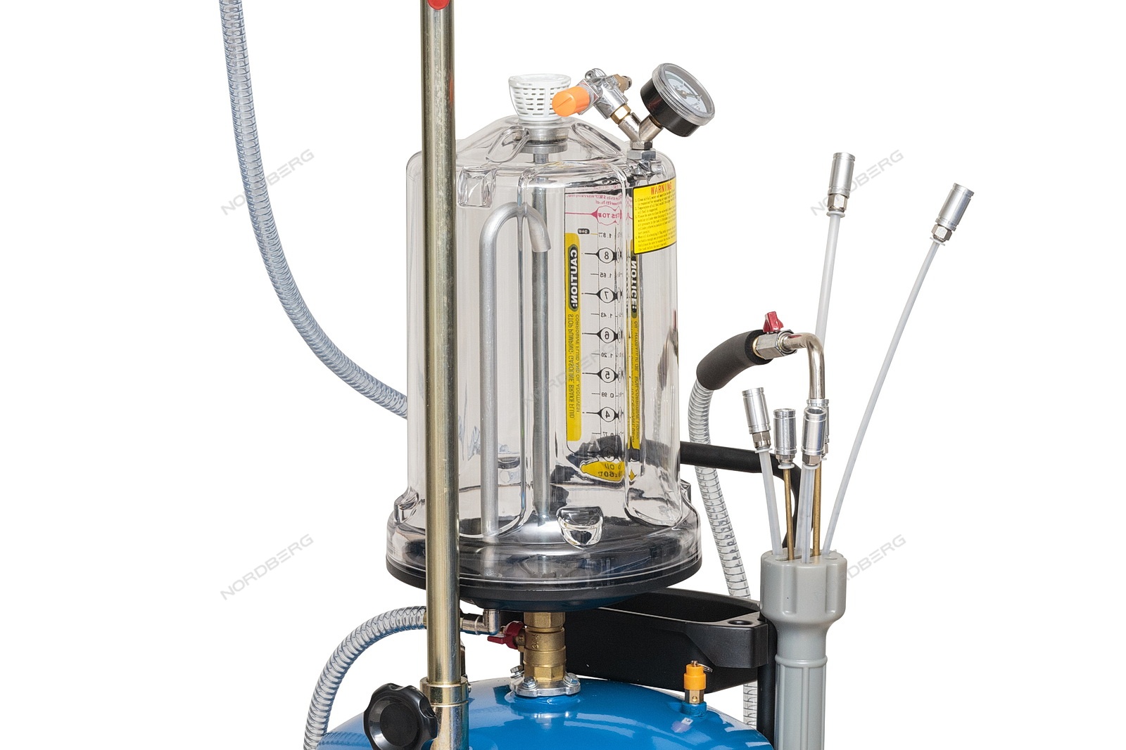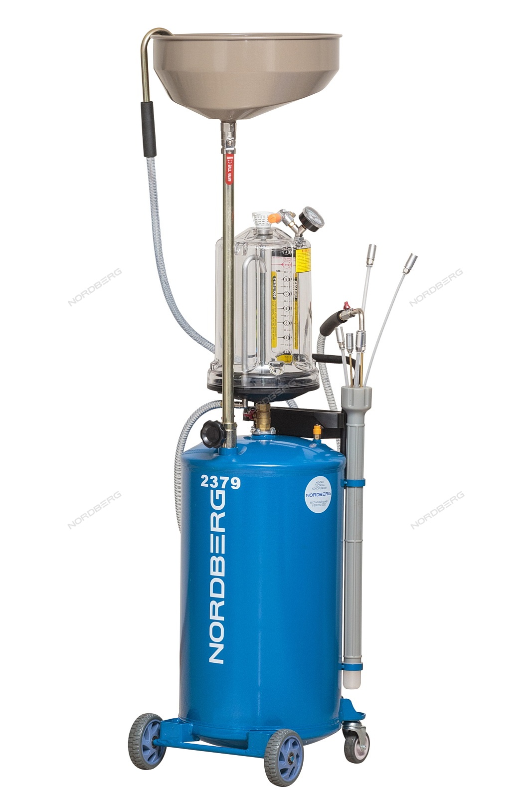 Установка для замены масла NORDBERG (2379) 2379B предназначена для удаления отработанного масла и других жидкостей из любого транспортного средства при помощи вентури-вакуумной вытяжной системы или свободным сливом.