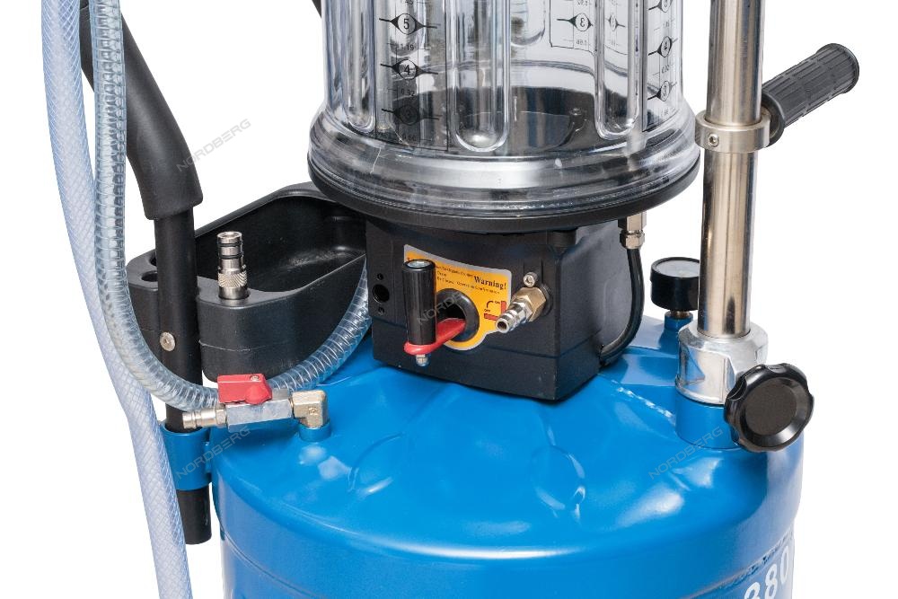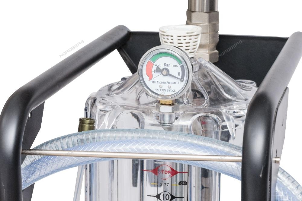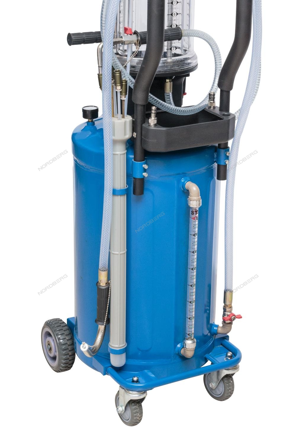 Установка для замены масла NORDBERG (2380) 2380B удаляет отработанное масло и другие жидкости из любого транспортного средства при помощи вентури-вакуумной вытяжной системы.