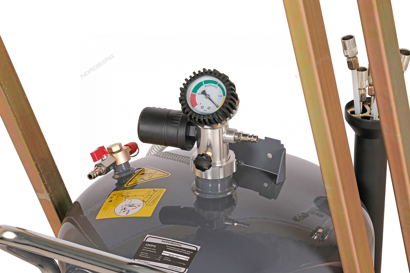 Пневматическая установка для сбора масла NORDBERG 2365PG – специализированное оборудование для использования в автосервисах, грузовых парках, автомастерских и других предприятиях, занимающихся обслуживанием и ремонтом автотранспорта.