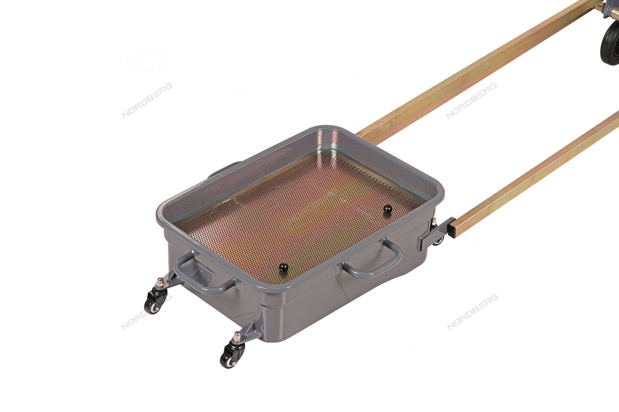 Пантограф позволяет разместить емкость для сбора масла под автомобилем, а также удерживать ее в верхнем положении, если автомобиль находится на подъемнике.