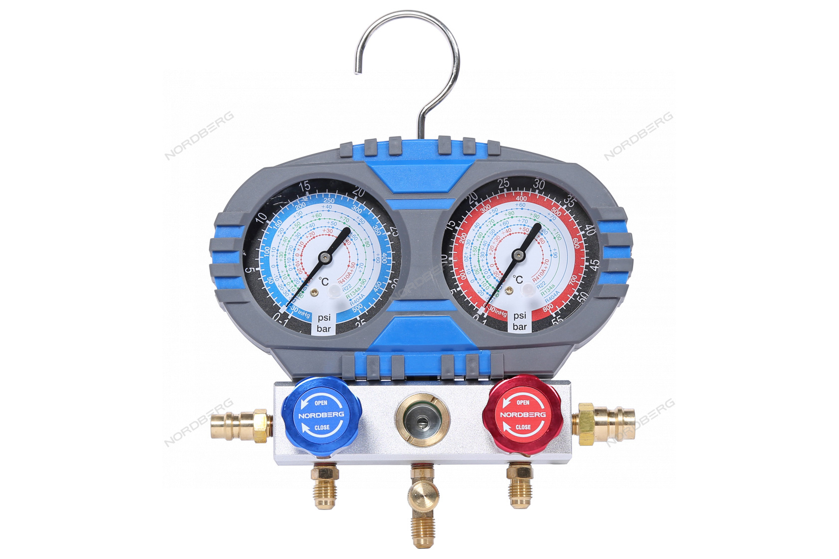 Манометрическая станция NORDBERG NFG32 – специальный прибор, позволяющий специалистам в области холодильного оборудования проводить точные измерения давления и пр., а также упрощать процесс обслуживания и настройки систем кондиционирования воздуха.