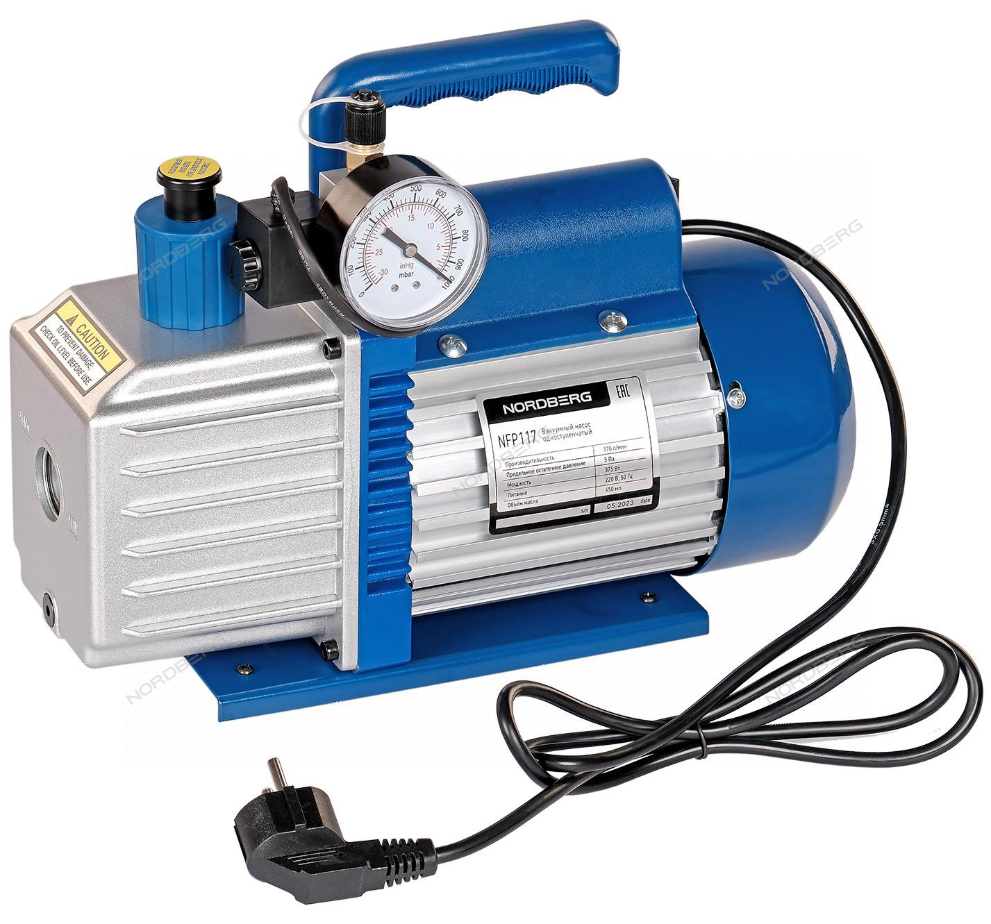 Вакуумный насос NORDBERG NFP117 разработан для сервисного обслуживания холодильных систем и систем кондиционирования и служит для создания вакуума в замкнутом контуре.