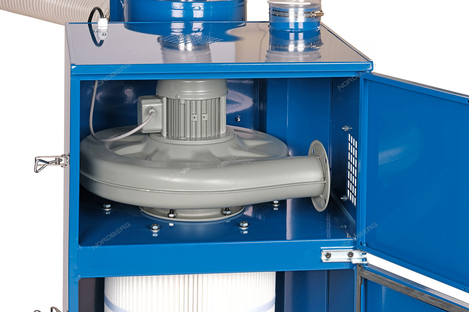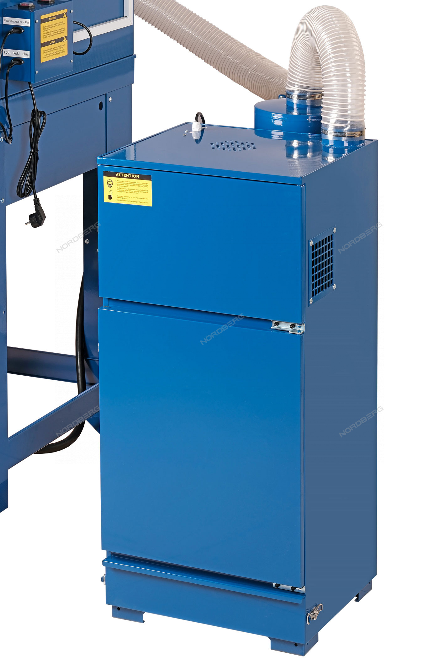 Высокоэффективный пылесборник с циклоном и двухступенчатой системой очистки от пыли с мощным вытяжным вентилятором, который создает необходимое разрежение для высасывания пыли из камеры.