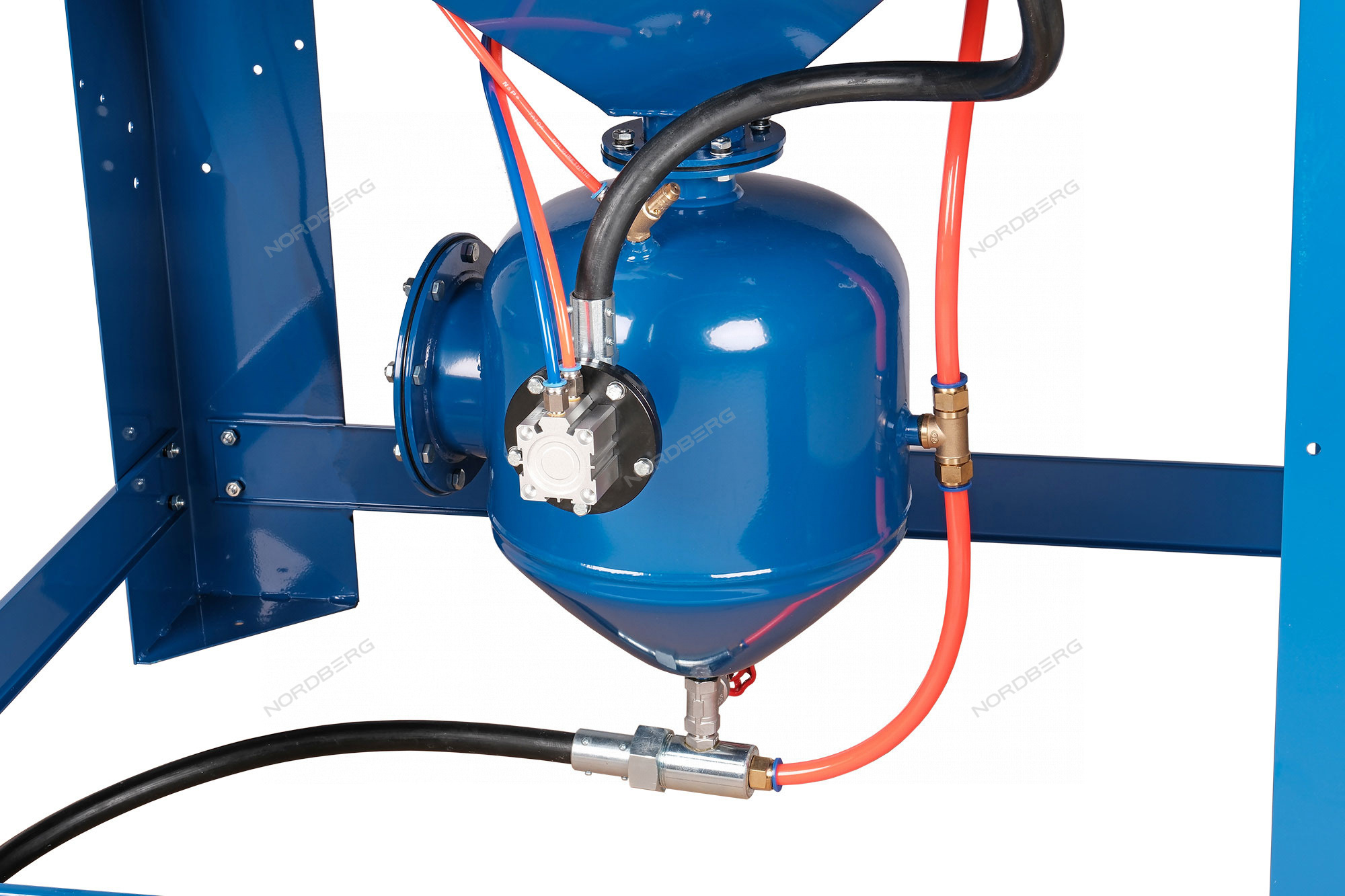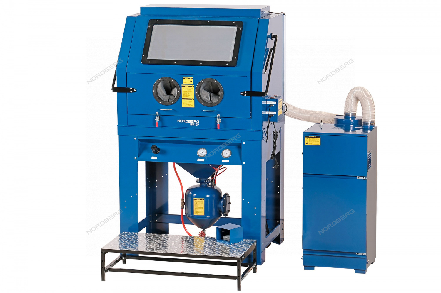 Пескоструйная камера с напорной системой подачи абразива NORDBERG NS10P – специализированное оборудование для обработки поверхности различных деталей в автосервисах и автотранспортных предприятиях.