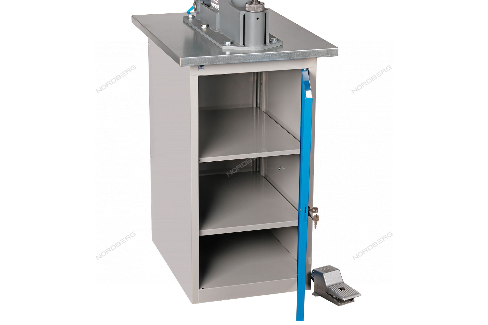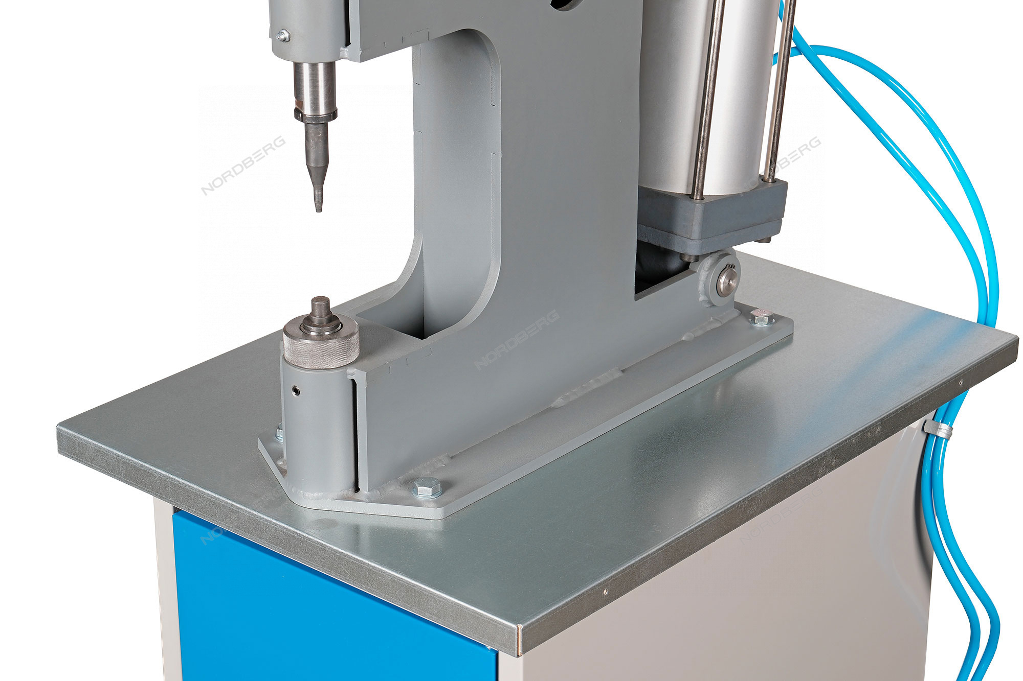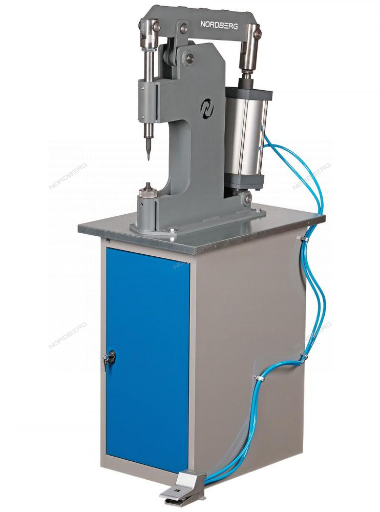 Эксклюзивная разработка компании NORDBERG – комплект, состоящий из пневматического станка для заклепки тормозных колодок NR8P и специальной тумбы для установки станка.