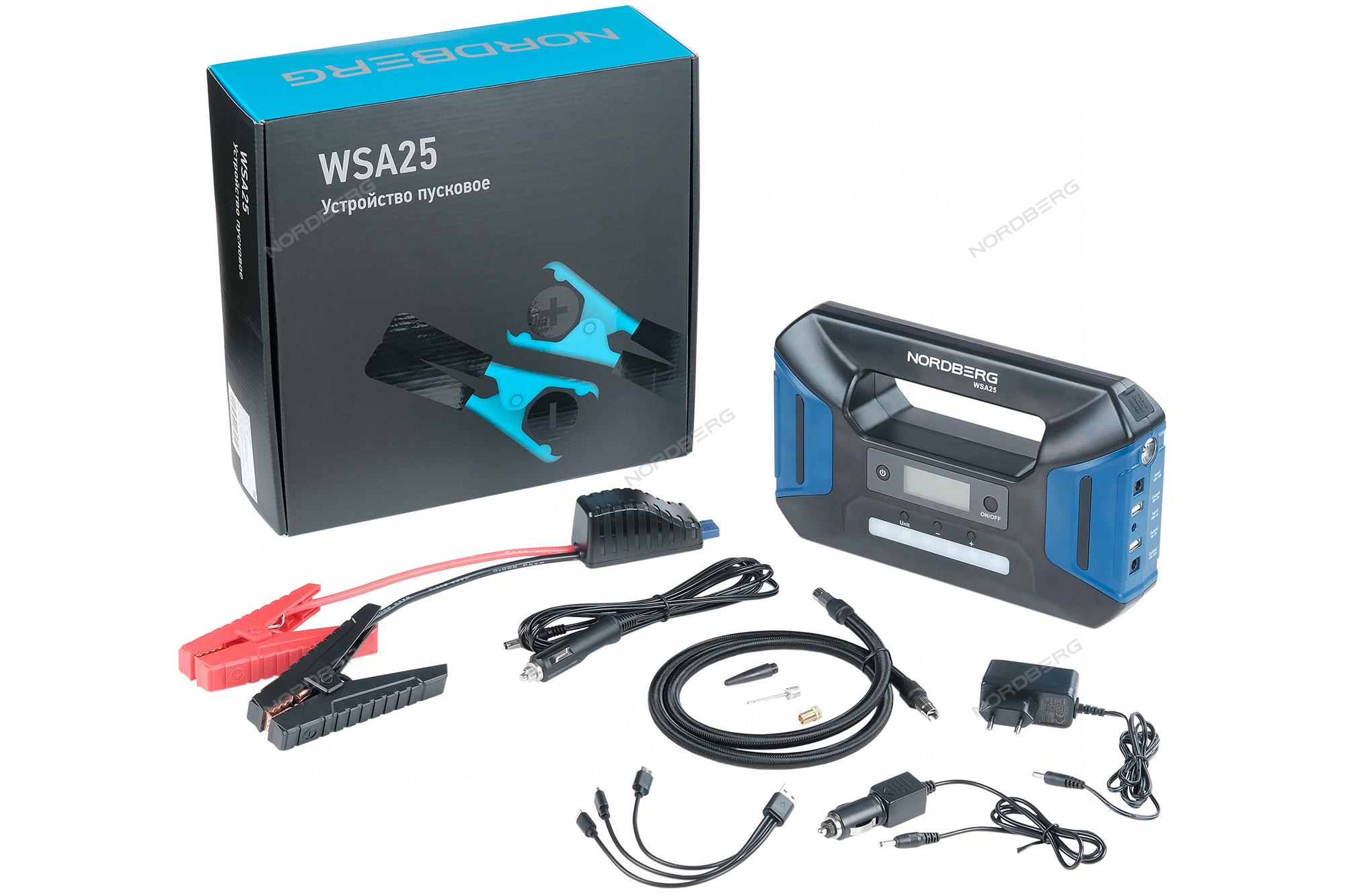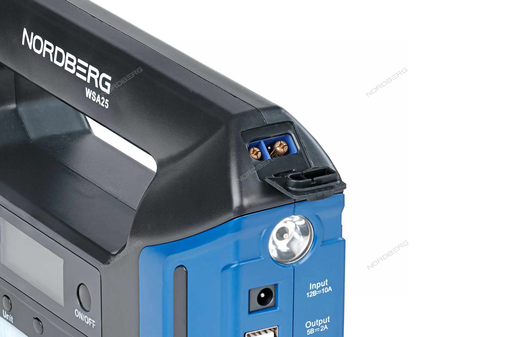 Устройство пусковое портативное 5/12/15V с компрессором, емкость 25 Aч NORDBERG WSA25