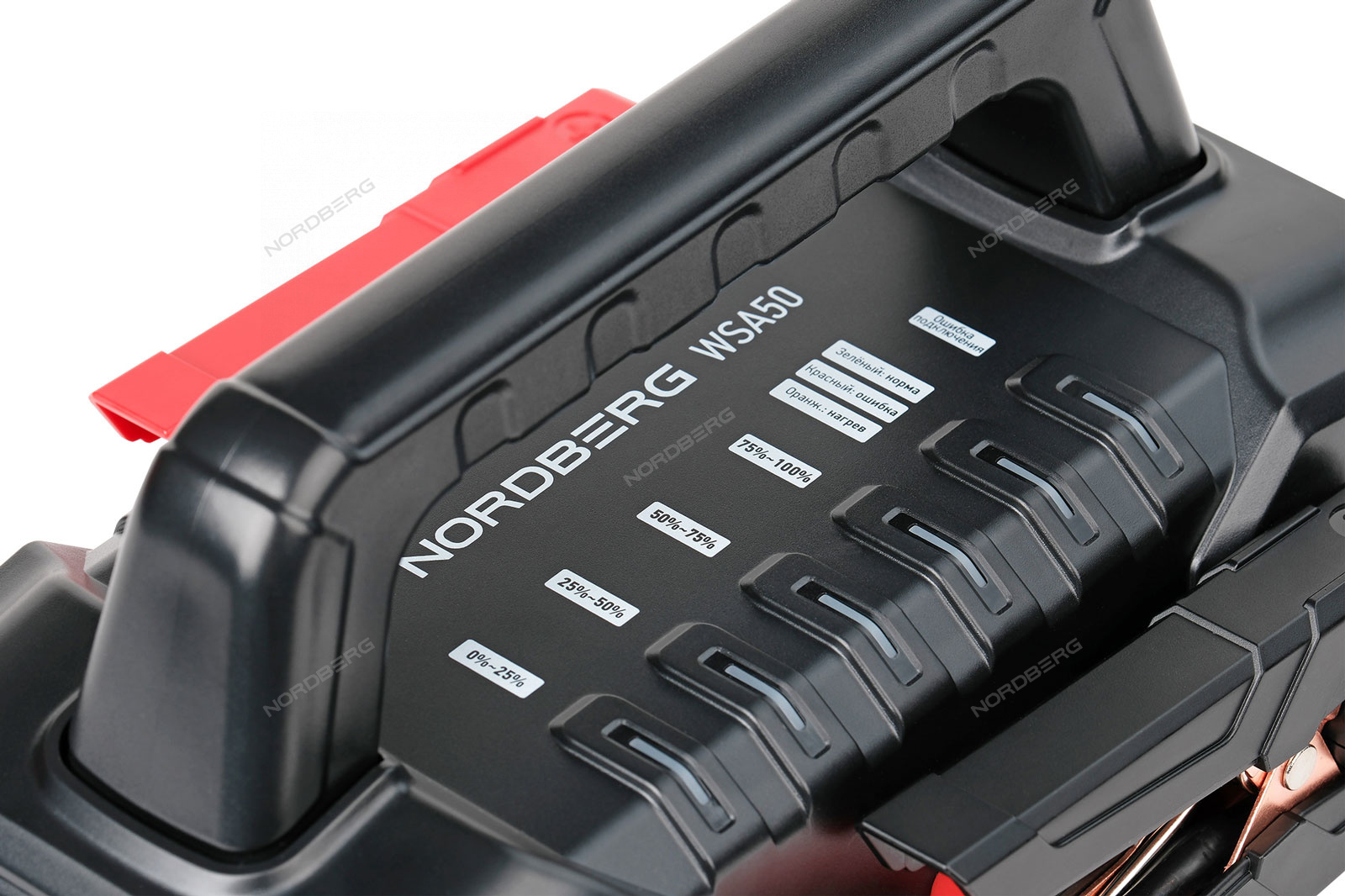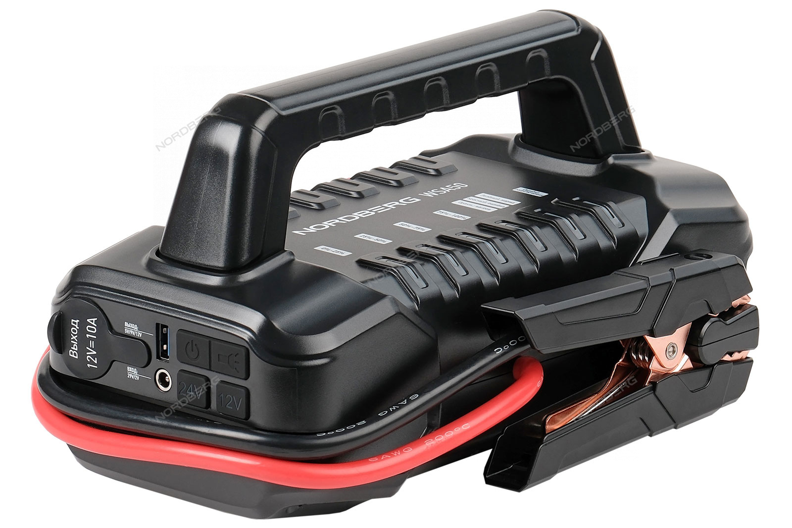 Пуско-зарядное портативное устройство NORDBERG WSA50 – компактная и мощная модель с большой емкостью встроенного аккумулятора для запуска бензиновых и дизельных двигателей, а также зарядки аккумуляторных батарей.