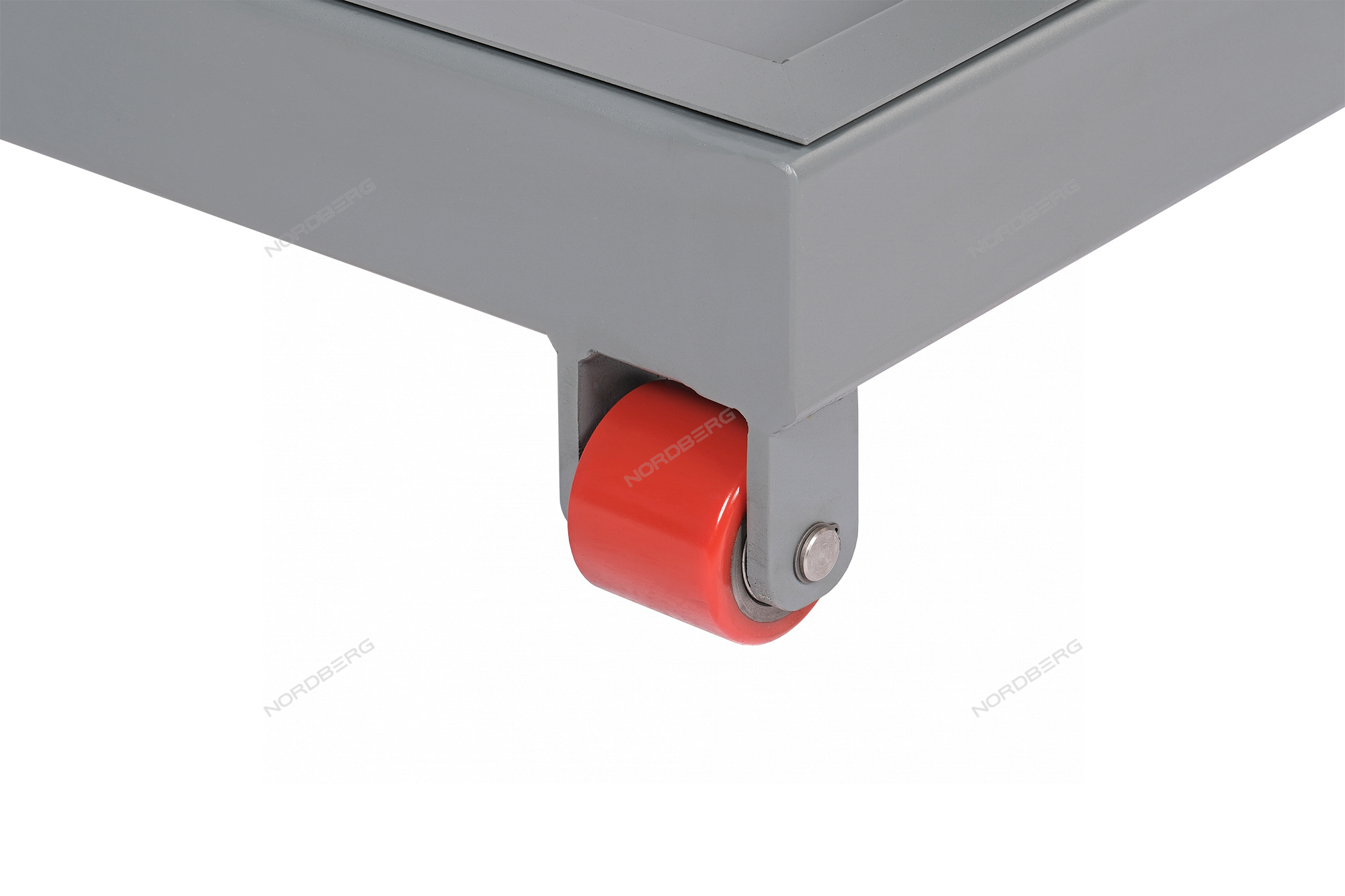 Мобильность стенда обеспечивается благодаря задним поворотным колесам и передним широким роликам.