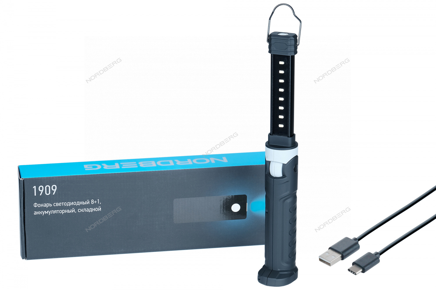 Лампа светодиодная 8+1, складная, аккумуляторная (без зарядного устройства) NORDBERG 1909