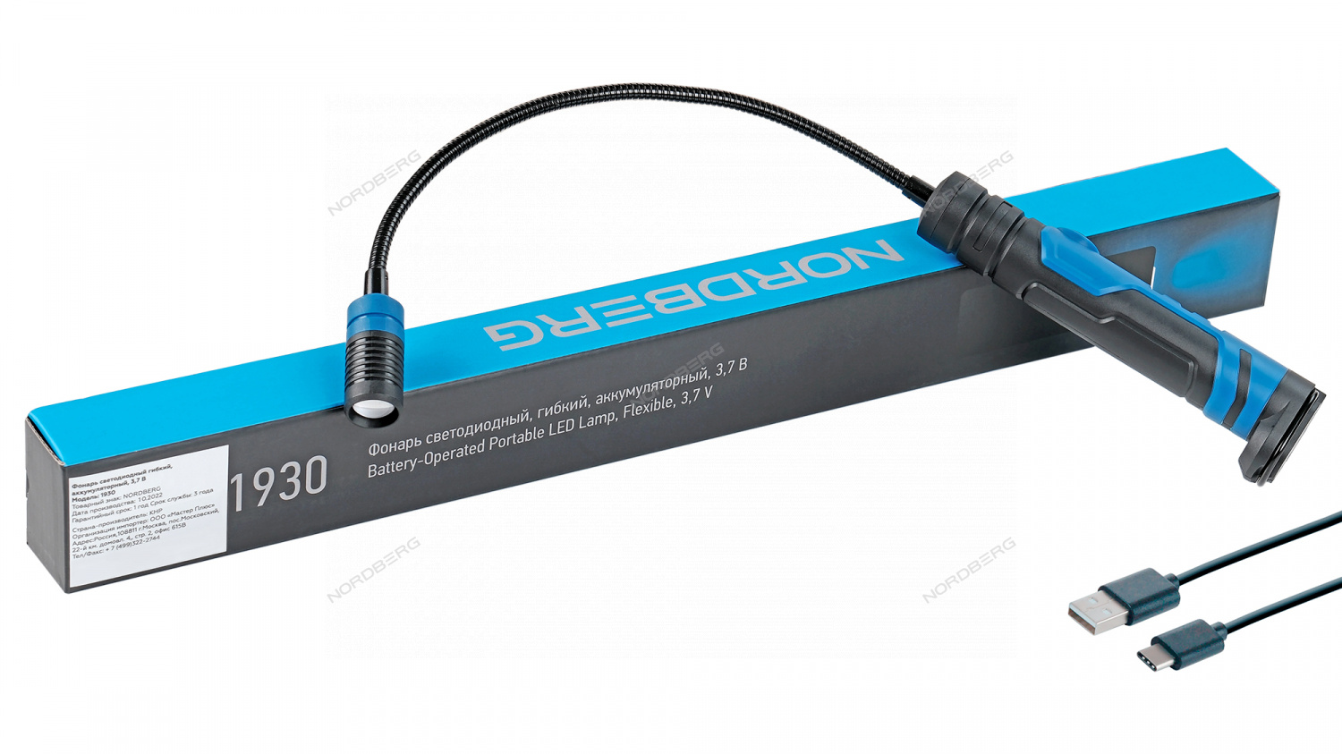 Фонарь светодиодный гибкий, аккумуляторный, 3,7 В NORDBERG 1930