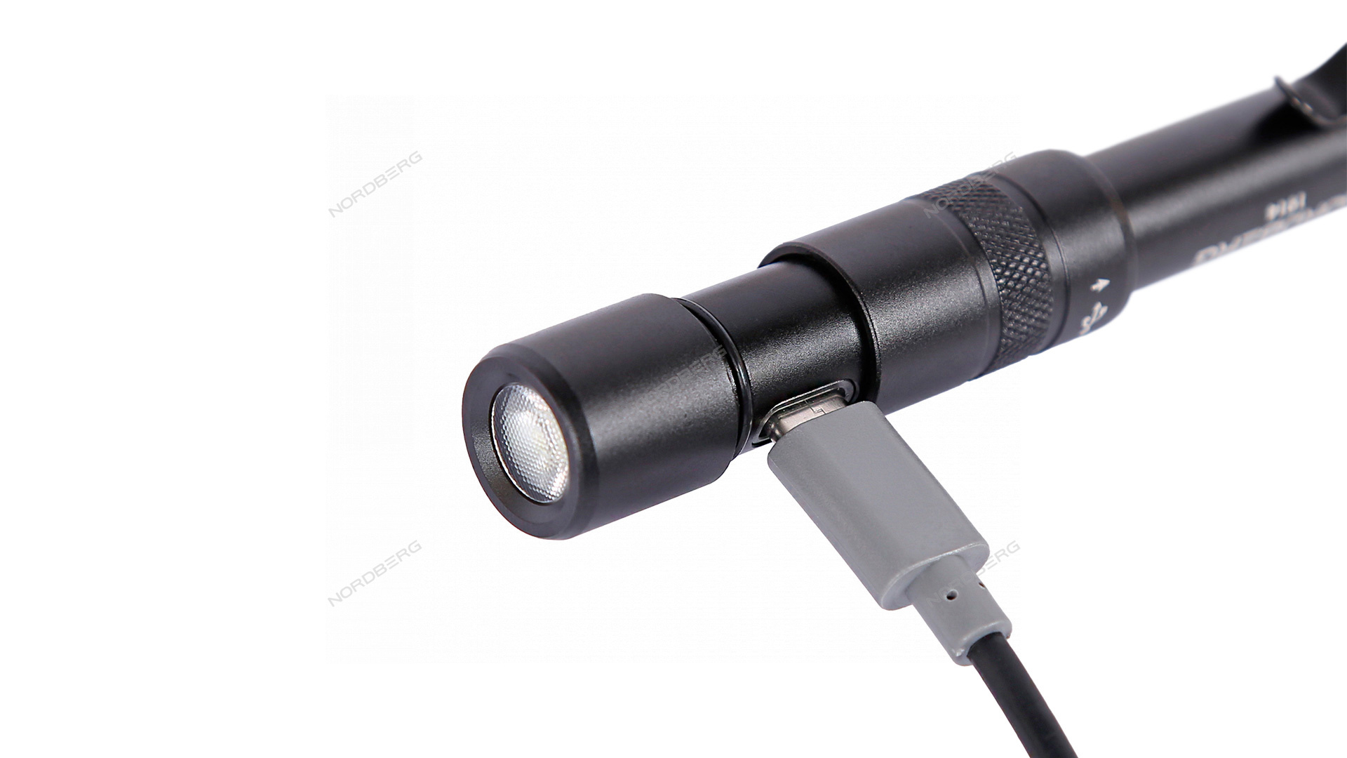 Зарядка встроенного аккумулятора осуществляется через разъем Type-C в фонаре и через разъем USB от источника питания.
