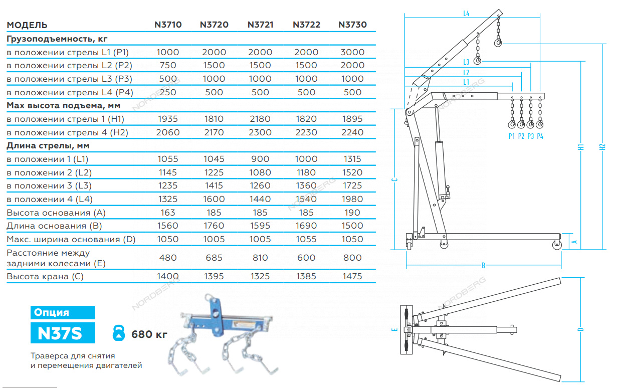Длина стрелы в положении 1 (L1), мм 1000