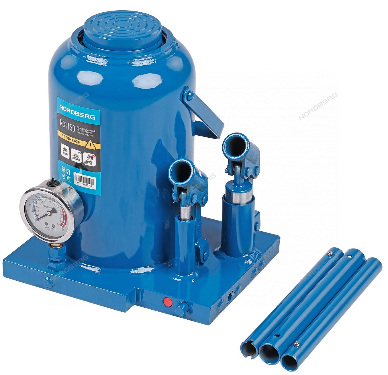 Гидравлический бутылочный домкрат NORDBERG N31150 с ручным приводом, предназначен для поднятия грузов. Бутылочные домкраты отличаются компактностью конструкции, простотой обслуживания и надежностью в эксплуатации. Они позволяют осуществлять плавный подъем груза при небольшом рабочем усилии благодаря высокому передаточному отношению между площадями поперечного сечения цилиндра и плунжера насоса. Не требуют при работе использования вспомогательных приспособлений.