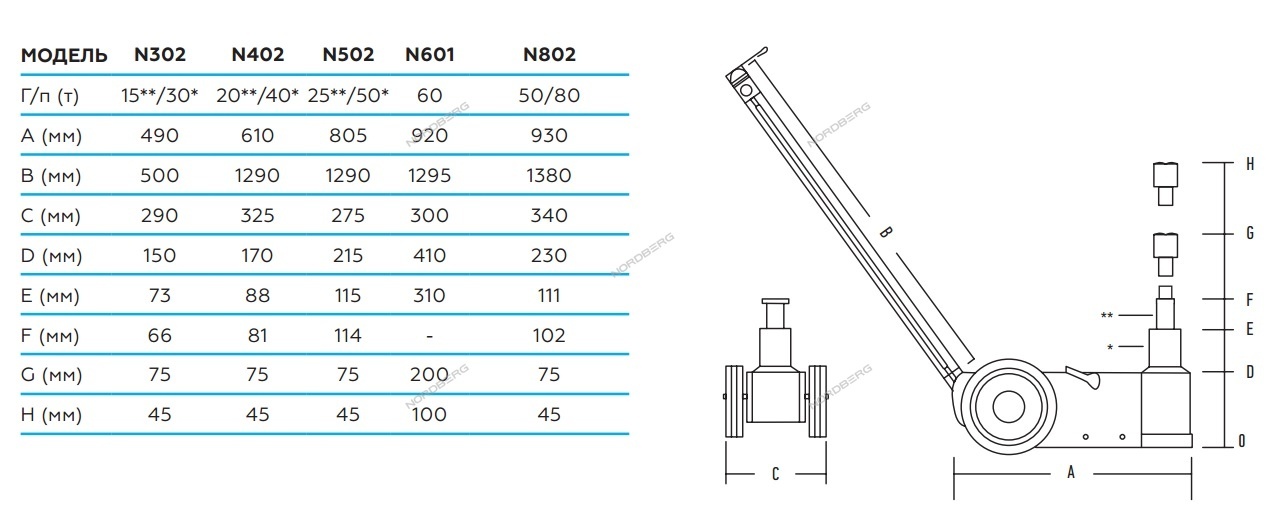 Подкатной пневмогидравлический домкрат NORDBERG N502
