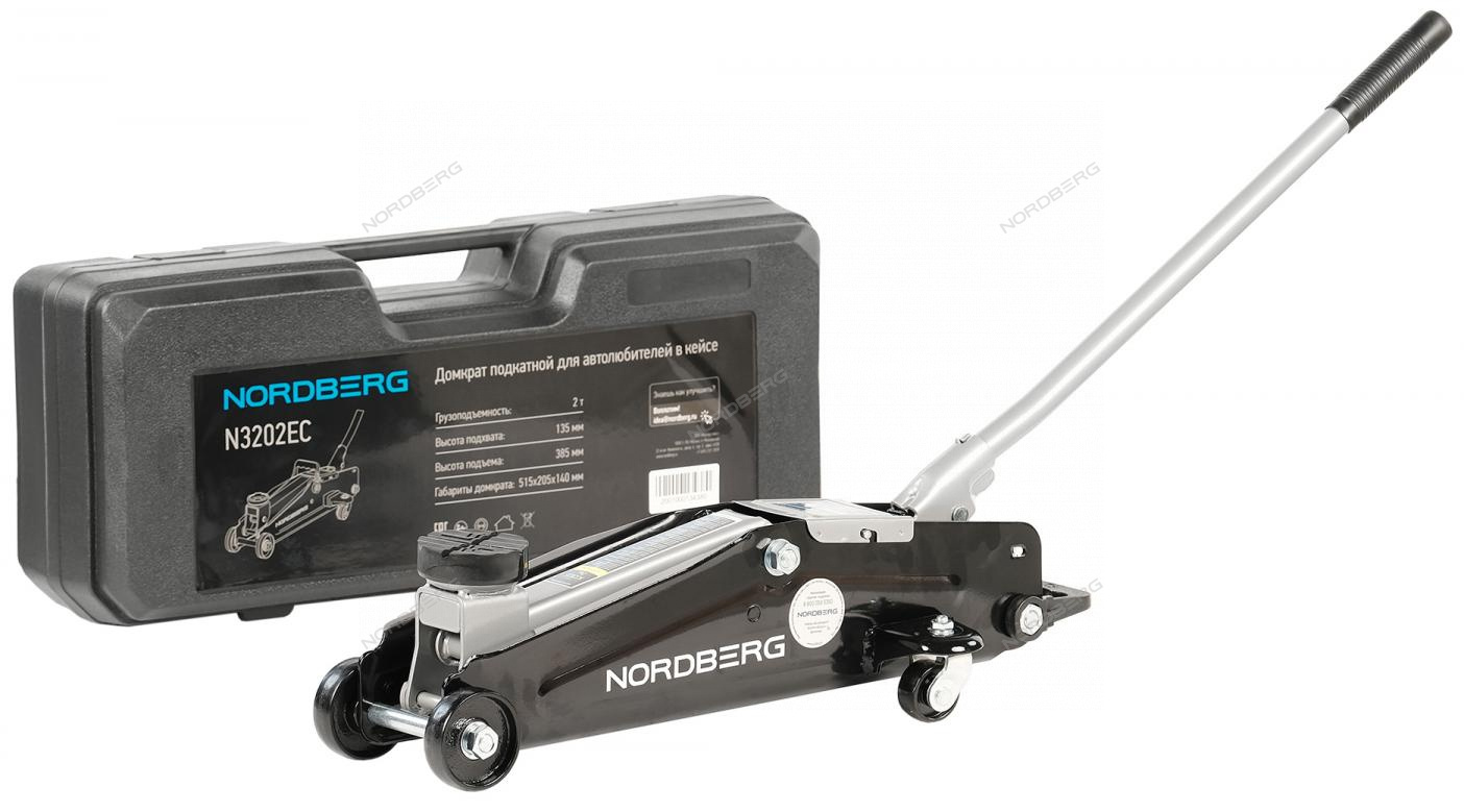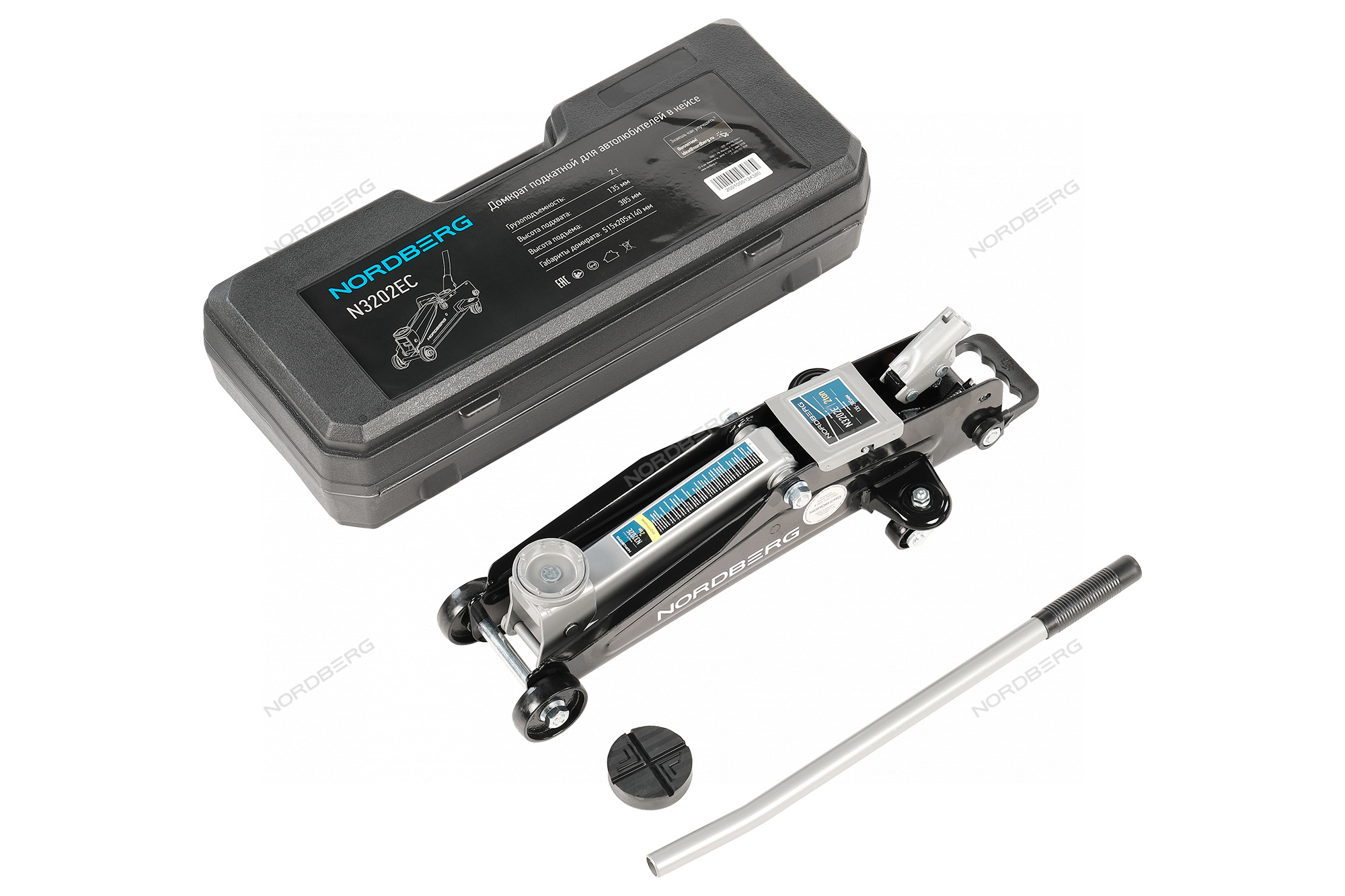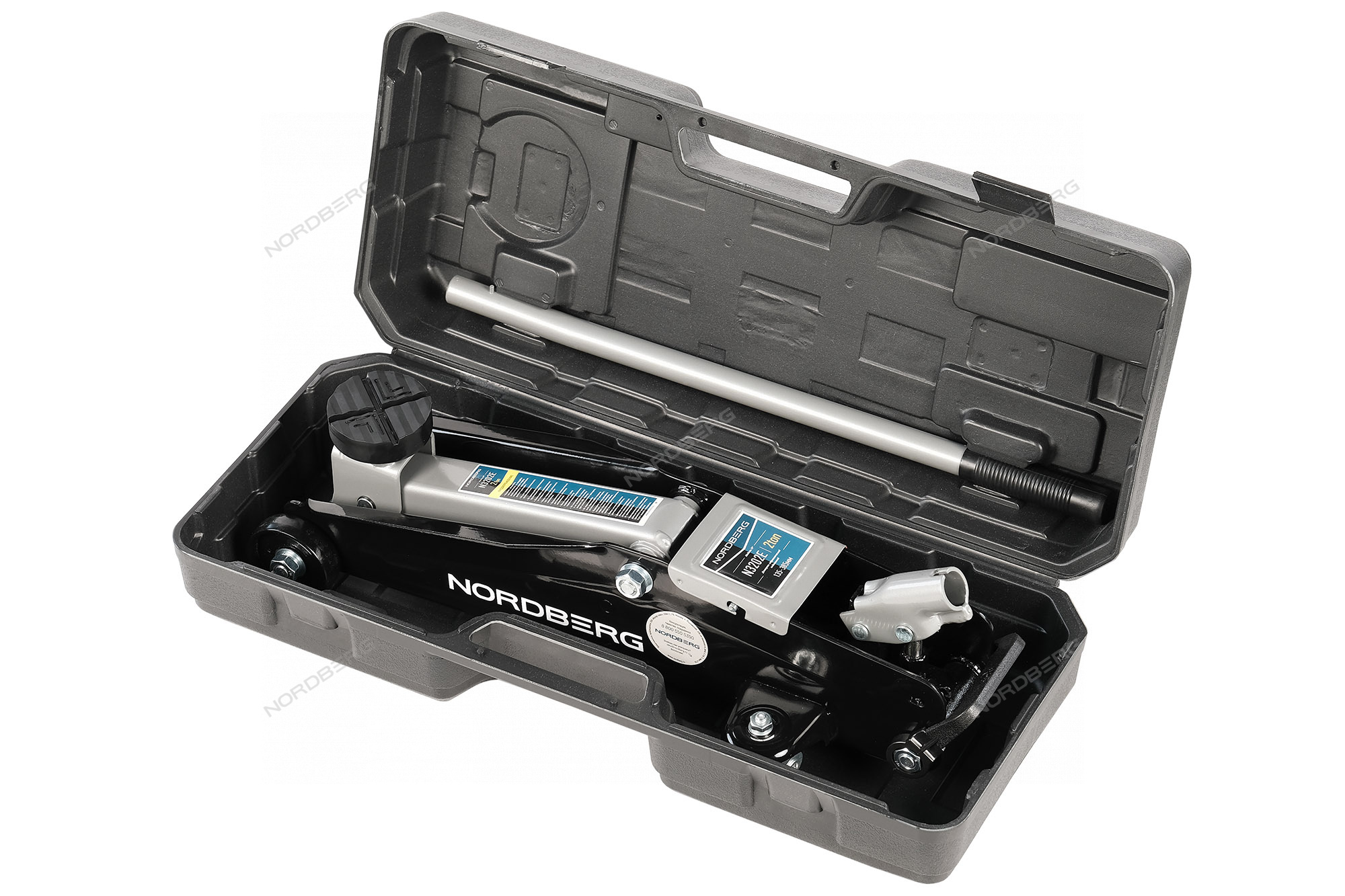 Домкрат подкатной для автолюбителя 2т в кейсе, Н=135-385мм (в кейсе) NORDBERG N3202EC
