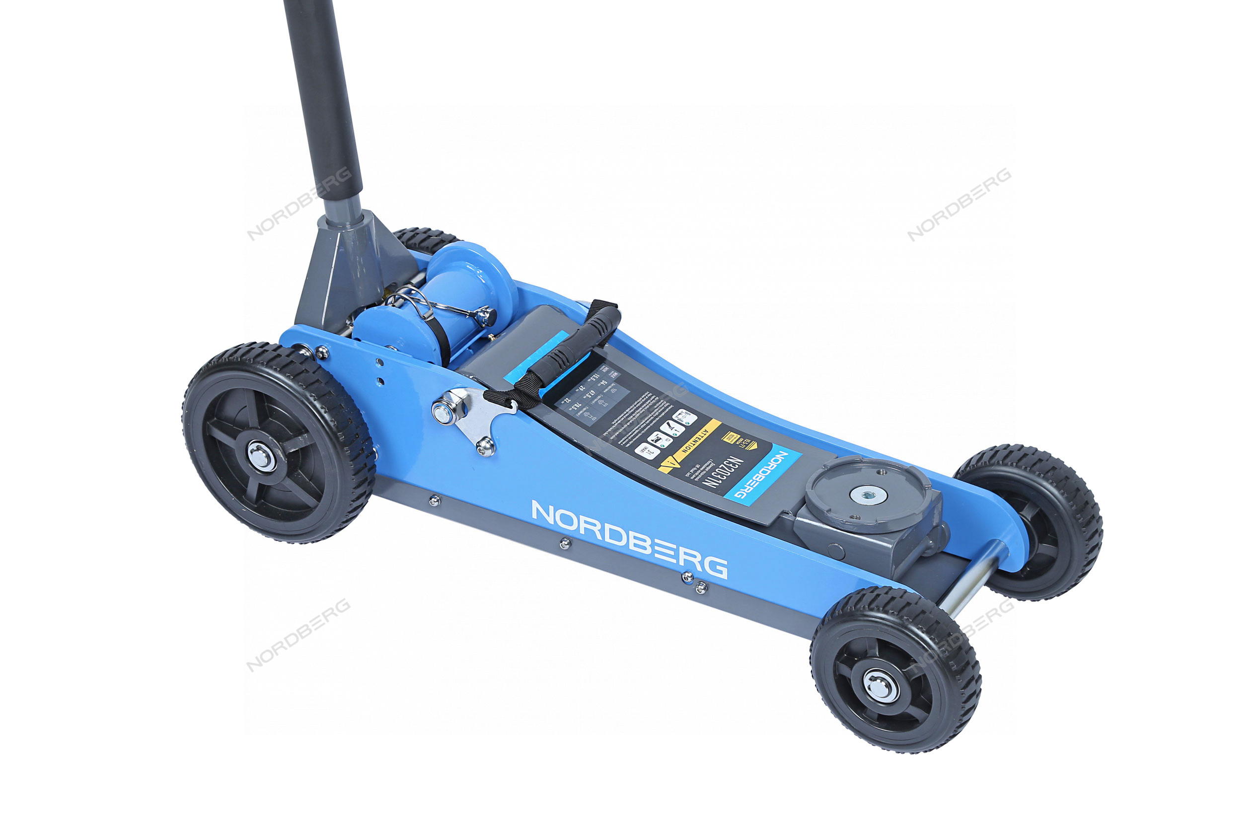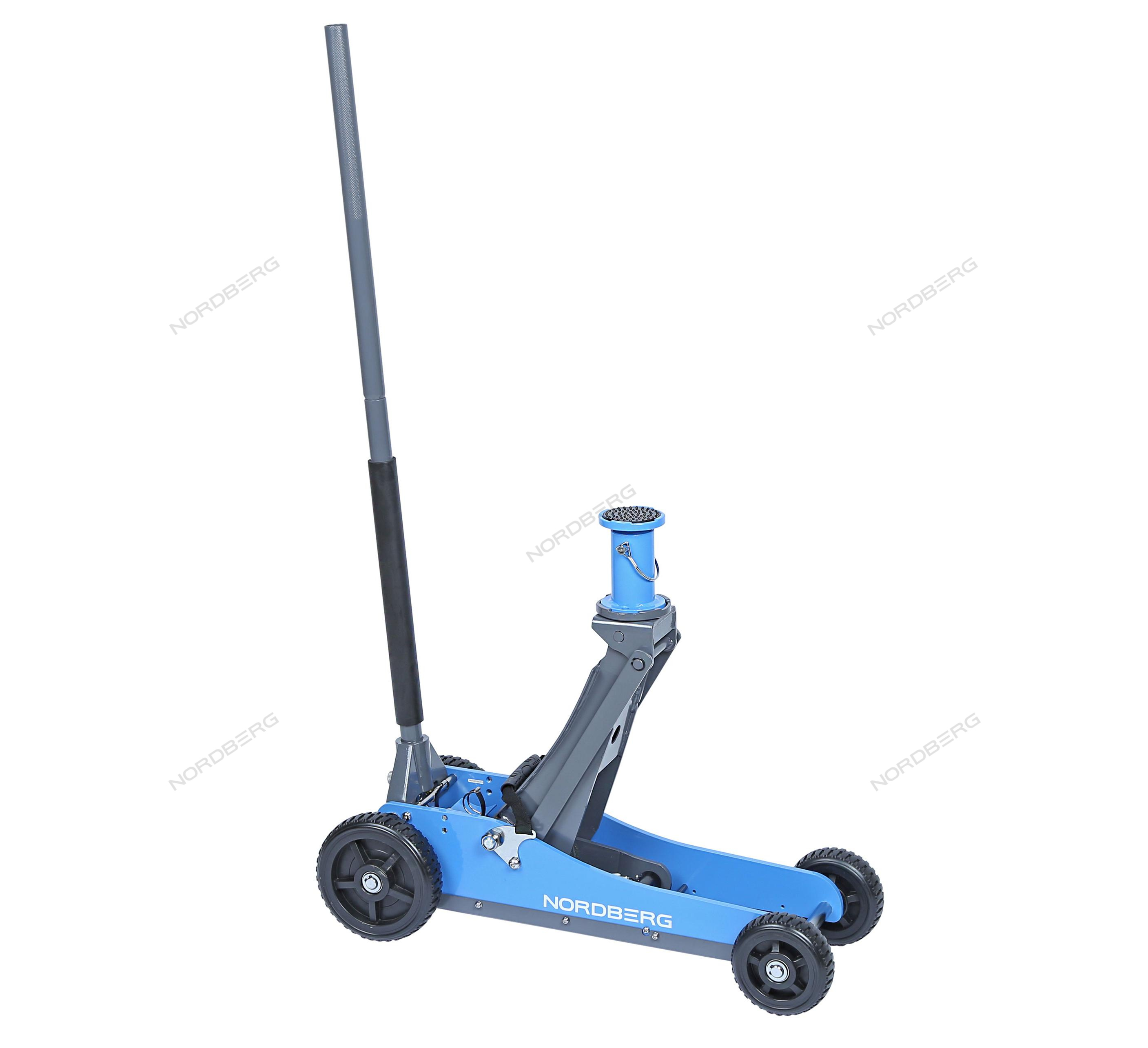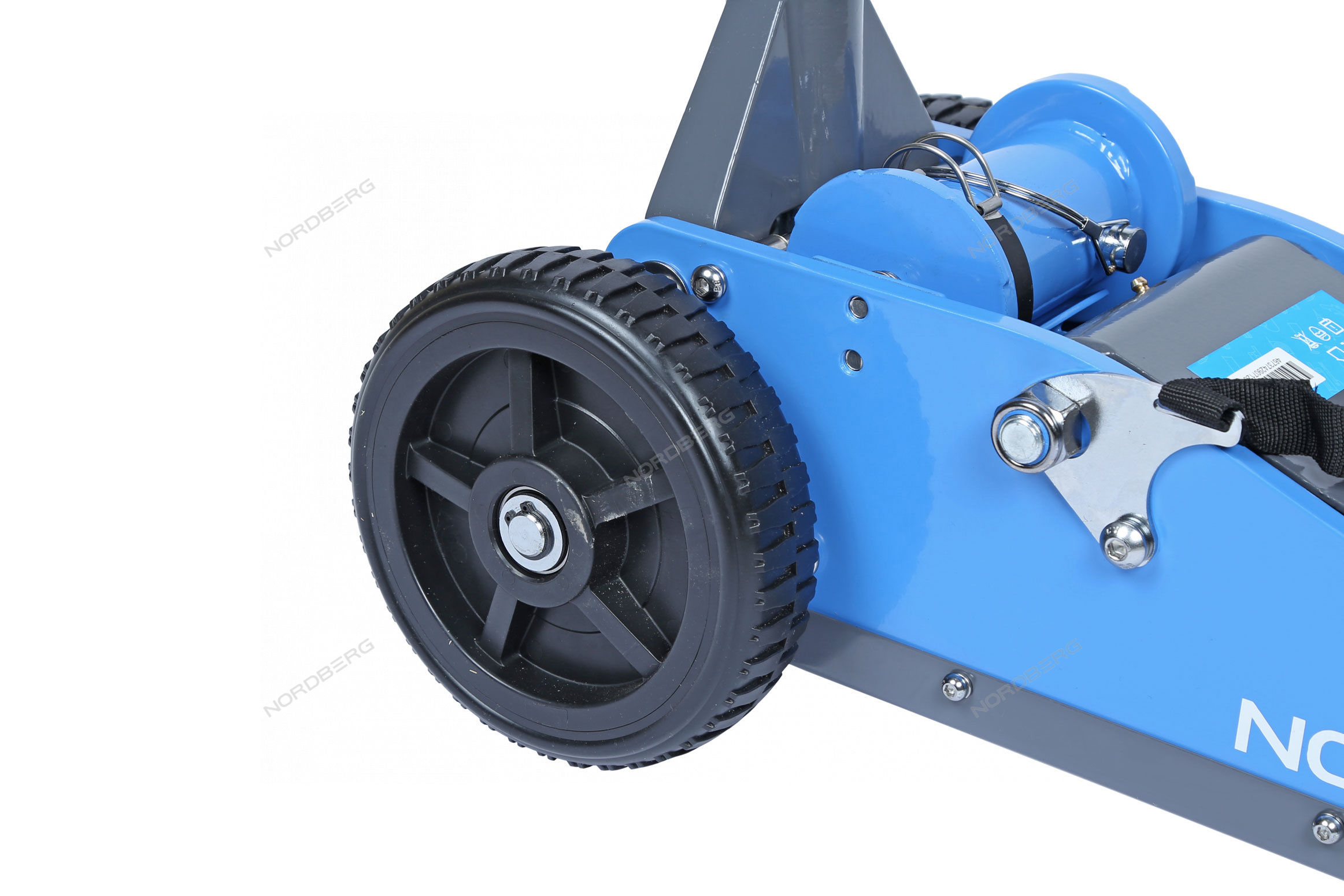 Колеса из ударопрочного пластика увеличенного диаметра 19 см позволяют использовать домкрат на неровных поверхностях, песке или грунте.