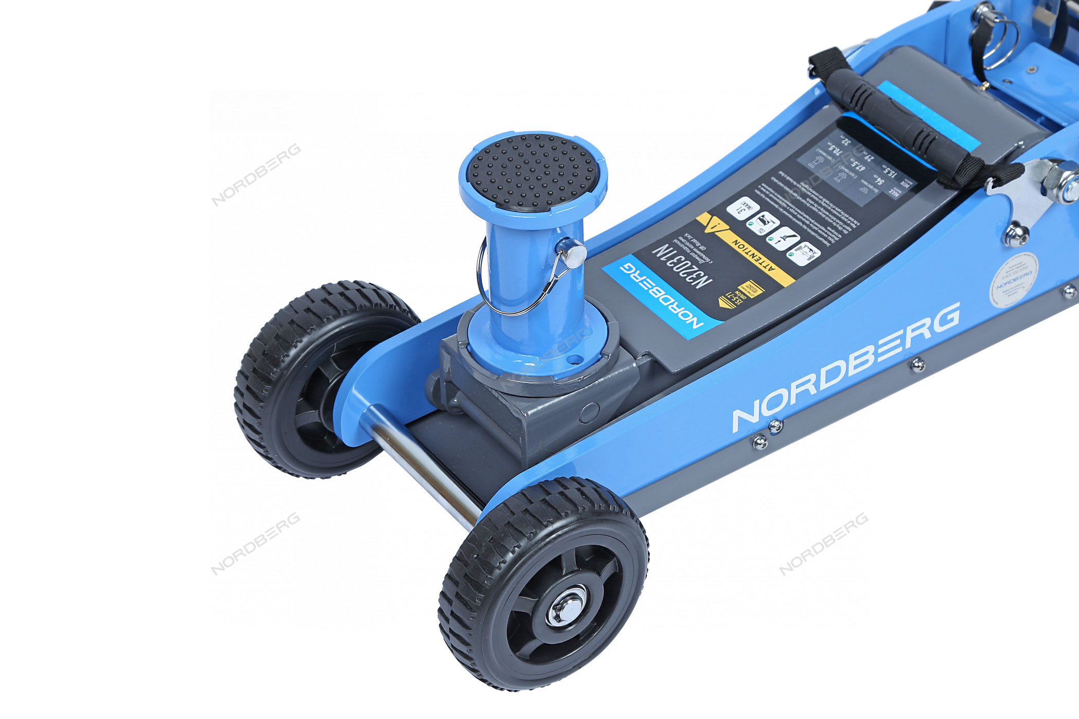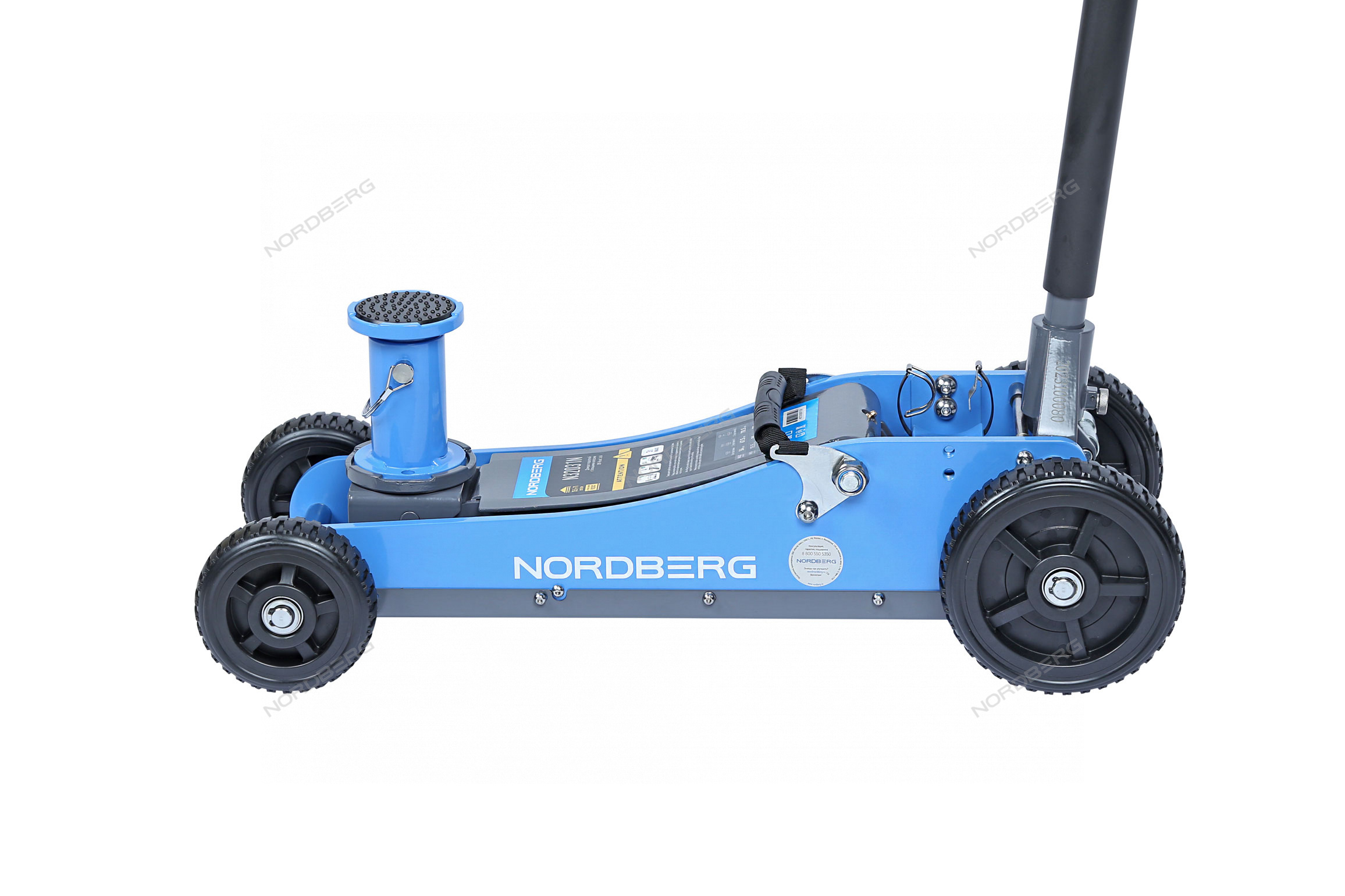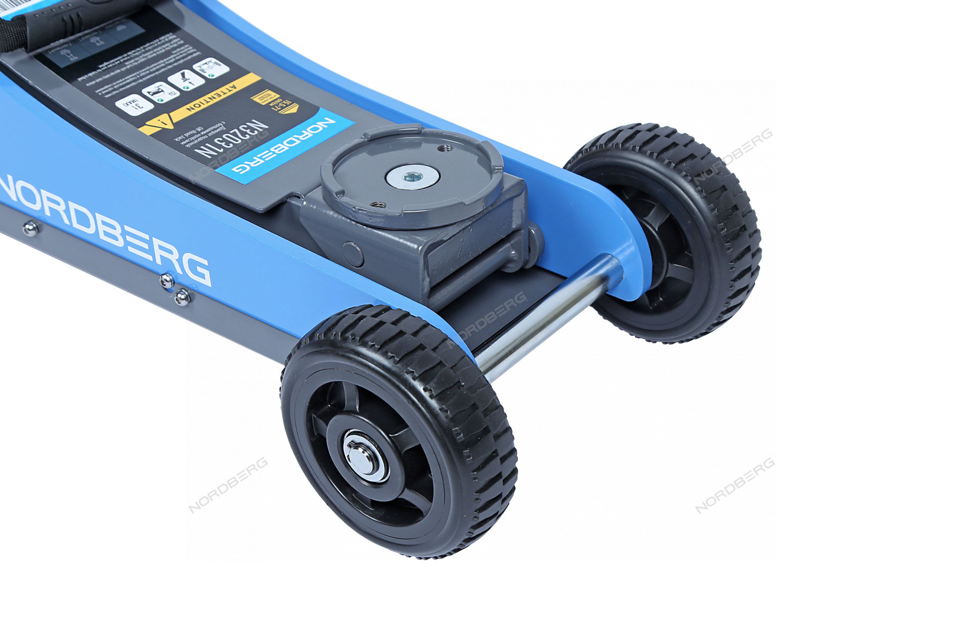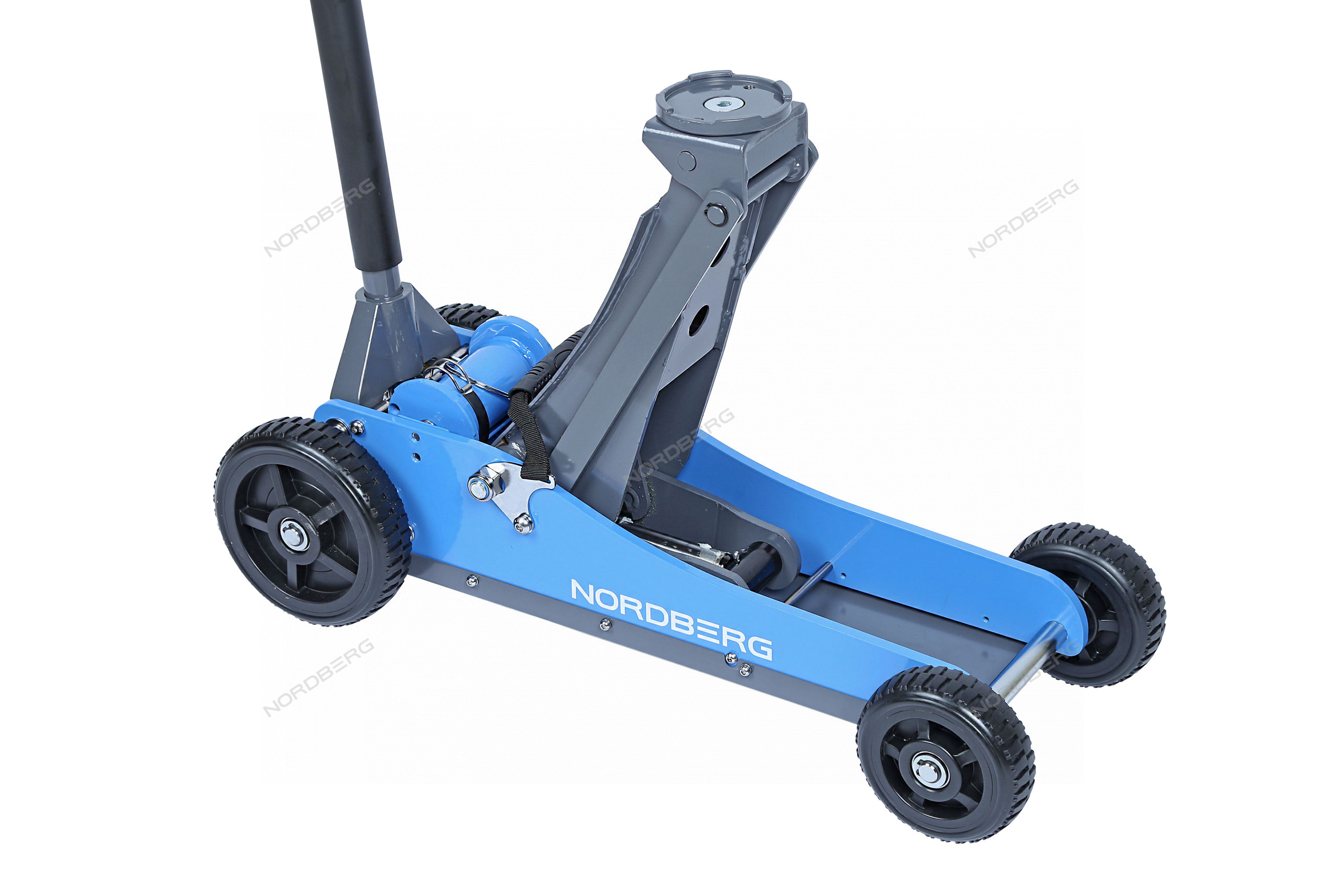 Колеса из ударопрочного пластика увеличенного диаметра 19 см позволяют использовать домкрат на неровных поверхностях, песке или грунте.