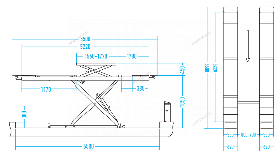 Подъемник ножничный для сх-разв 5,5т, 380В, 2 уровня, серый NORDBERG N635-5,5G