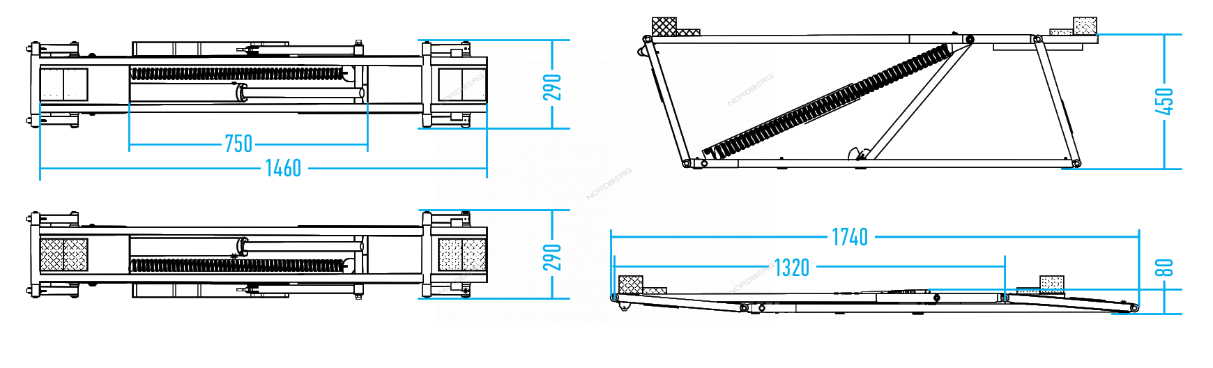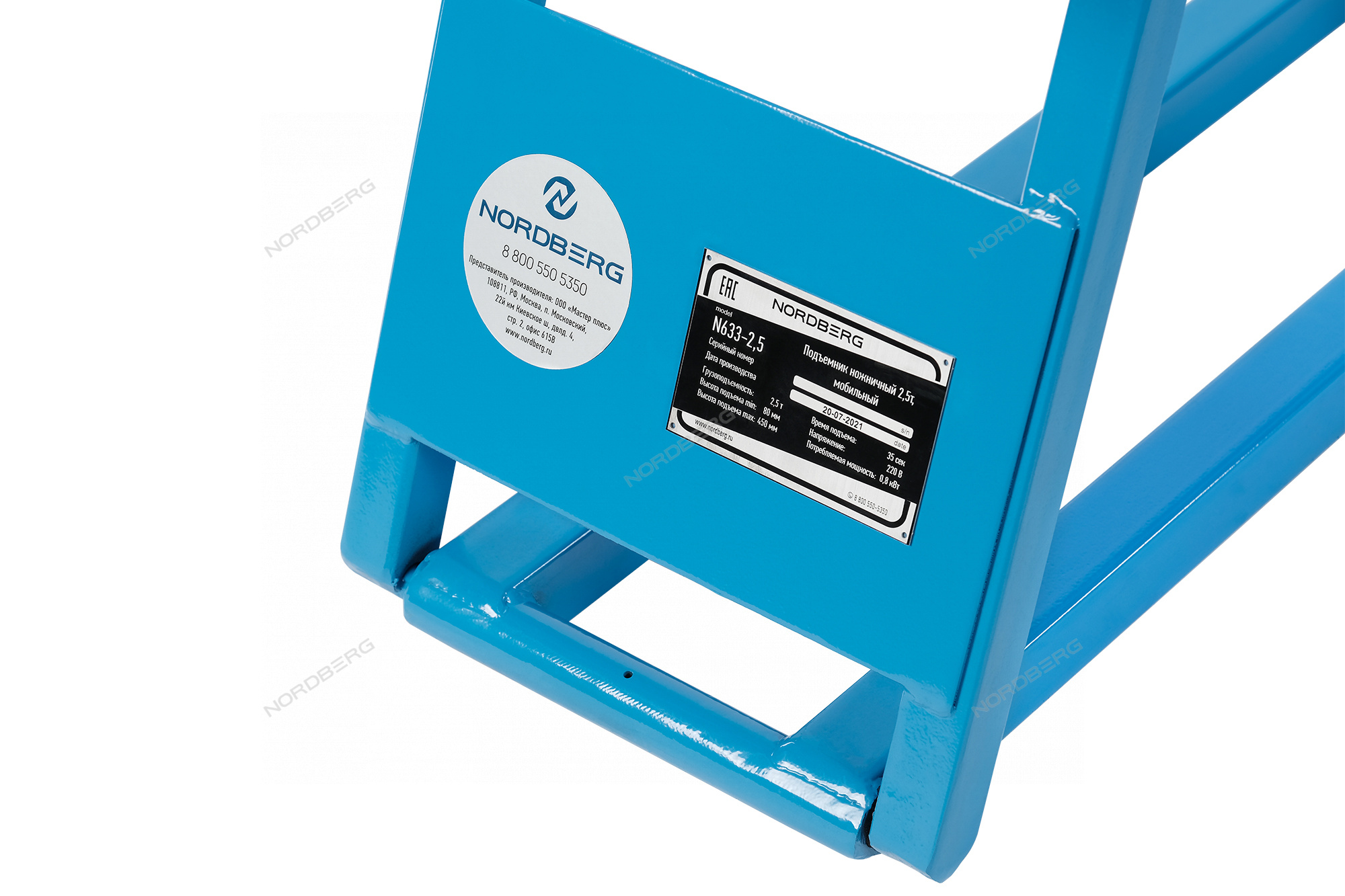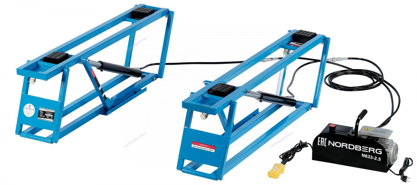 Подъемник ножничный г/п 2,5 т, портативный, мобильный 220В для детейлинга, для оклейки пленкой, для автомоек, тюнинг ателье, для низкобазных автомобилей NORDBERG N633-2,5