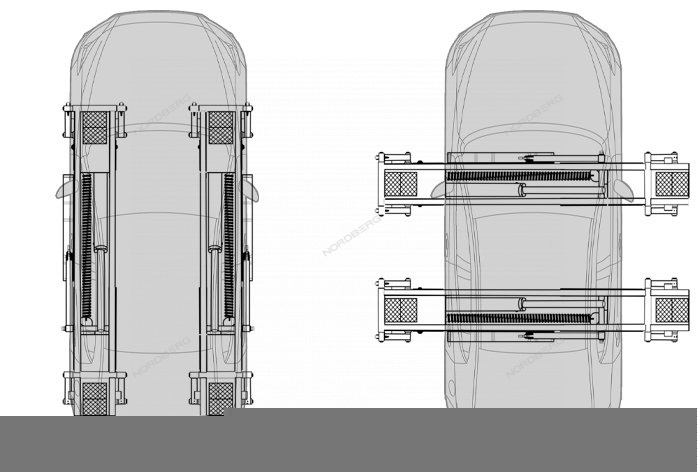 Два гидроцилиндра для равномерного подъема автомобиля