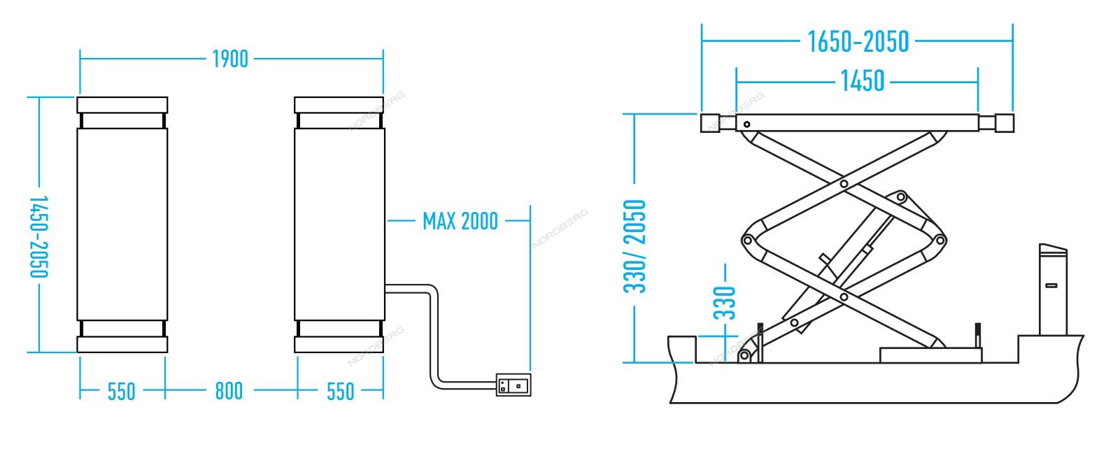 Выдвижные консоли для машин с удлиненной базой, длина 1650–2050 мм