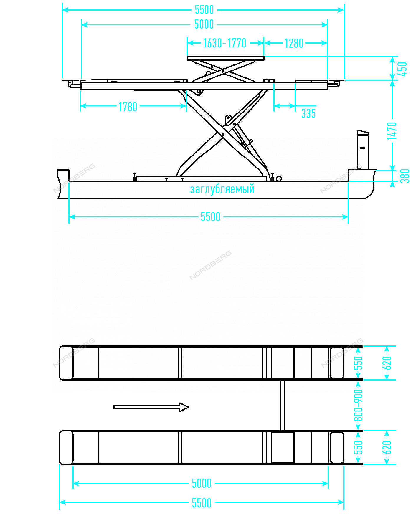 Подъемник ножничный для сх-разв 5,5т, 380В, 2 уровня, серый NORDBERG N635-5,5G