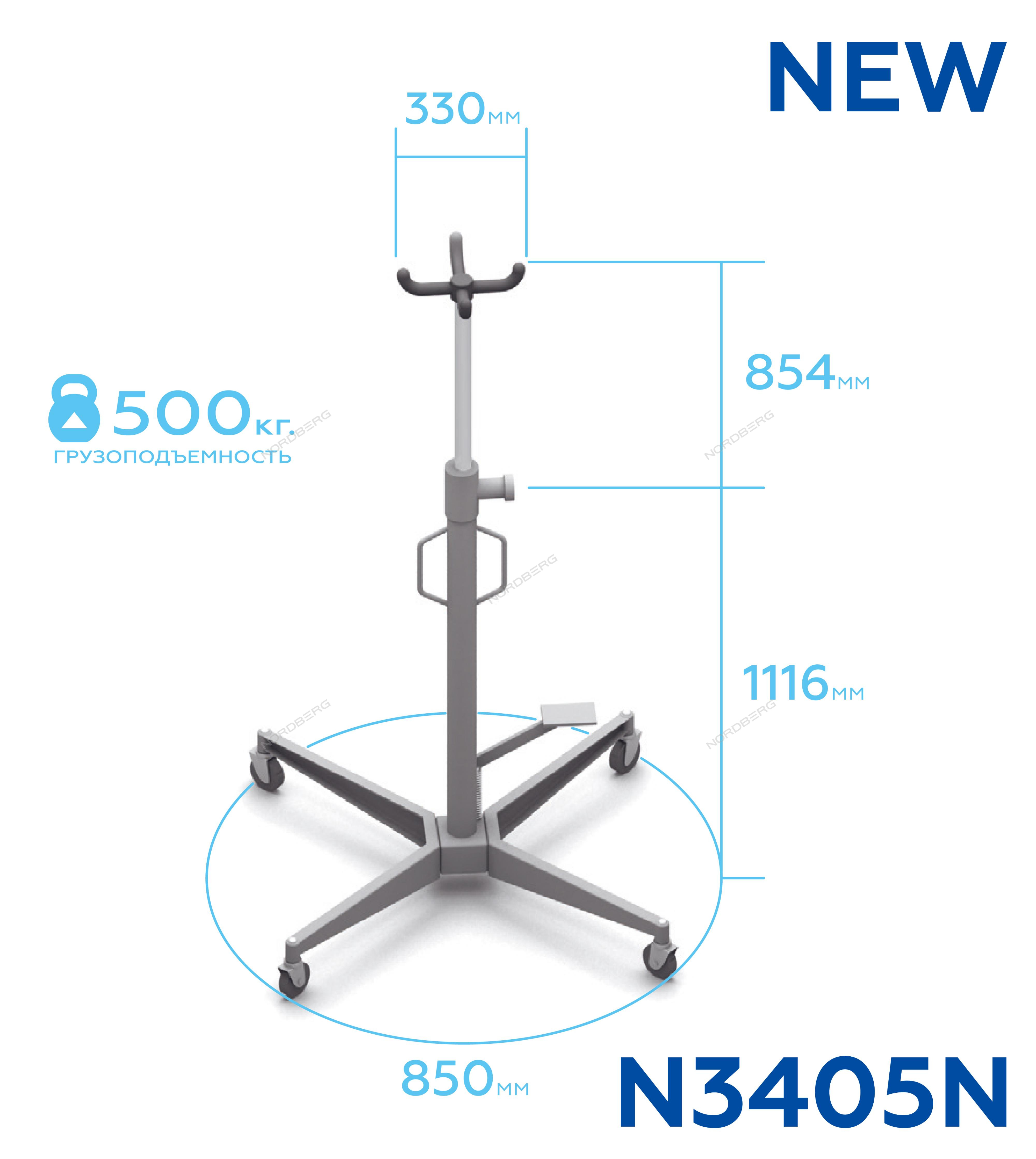 Трансмиссионная гидравлическая cтойка NORDBERG N3405N предназначена для снятия и установки автомобильных коробок передач, элементов выхлопной системы, топливных баков и т.п.