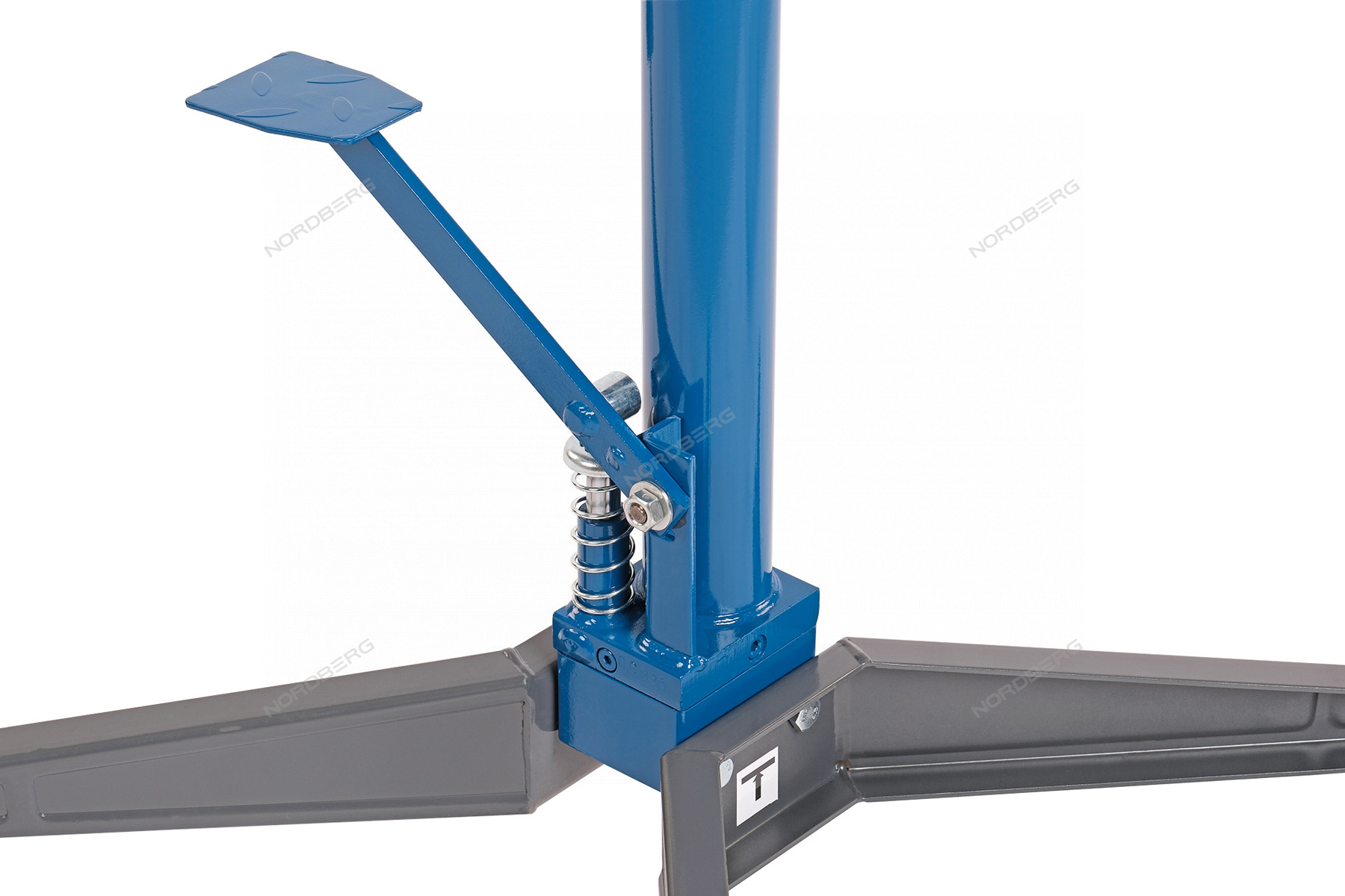 Управление гидравлическим приводом поднятия платформы при помощи педали, а также управление спуском простым отворачиванием одной рукой специальной металлической рукоятки позволяет лучше контролировать положение агрегата при вертикальном положении.