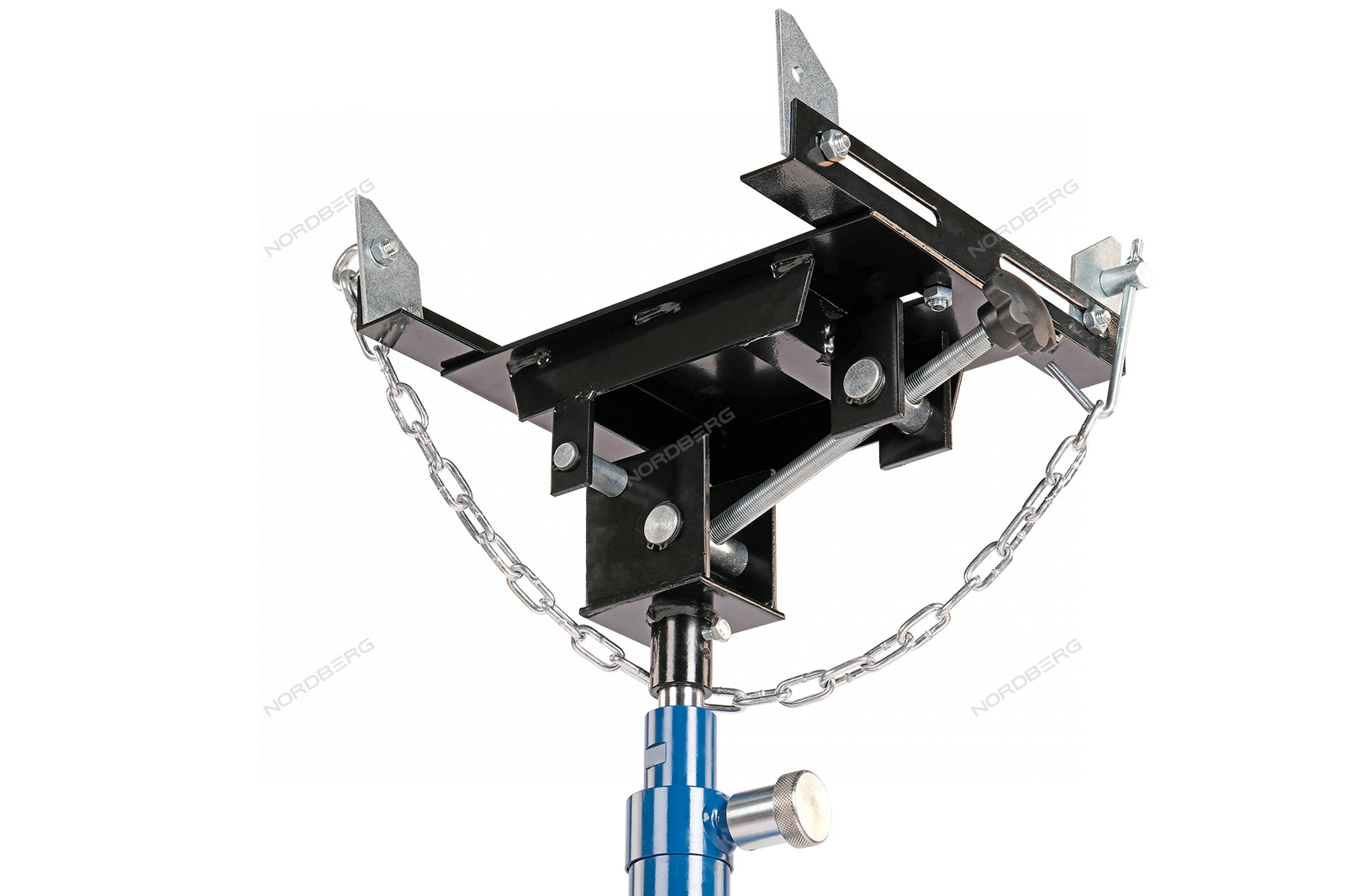 Установочная регулируемая платформа 34х34 см вместо обычной приёмной насадки позволяет надежно расположить на ней агрегаты. Благодаря удобным регулировкам, платформа может изменять длину и ширину расположения ограничителей для лучшего захвата агрегата, а также изменять угол наклона, тем самым позволяя подстроиться под различные конфигурации демонтируемых/монтируемых узлов. Также платформа имеет цепь для обвязки агрегата с целью его жесткой фиксации на платформе во избежание падения агрегата со стойки во время снятия или установки на автомобиль.