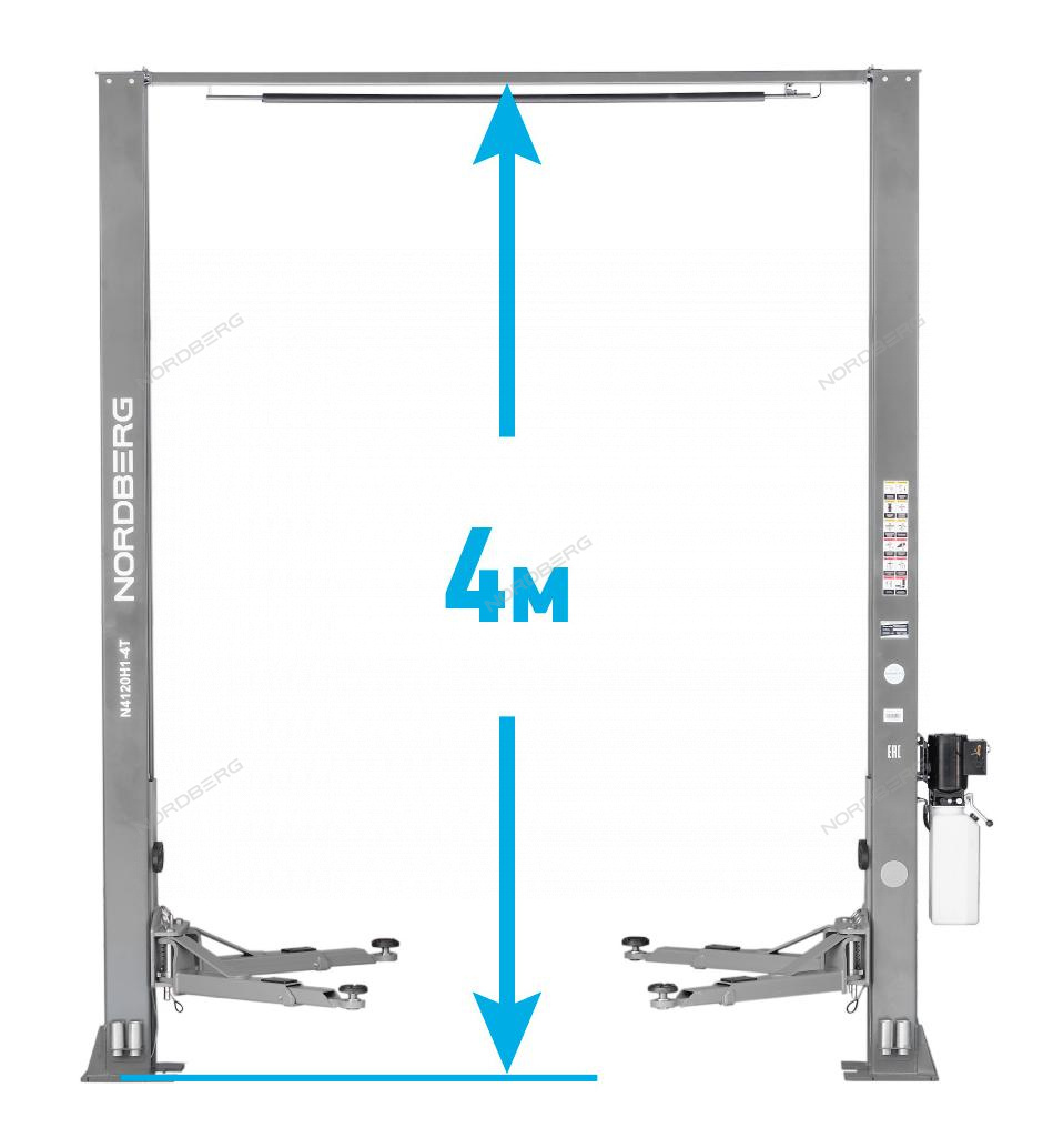 Двухстоечный подъемник с верхней синхронизацией NORDBERG N4120H1-4G_3+2 – профессиональное оборудование для обслуживания легкового и грузового транспорта в автосервисных мастерских и СТО.