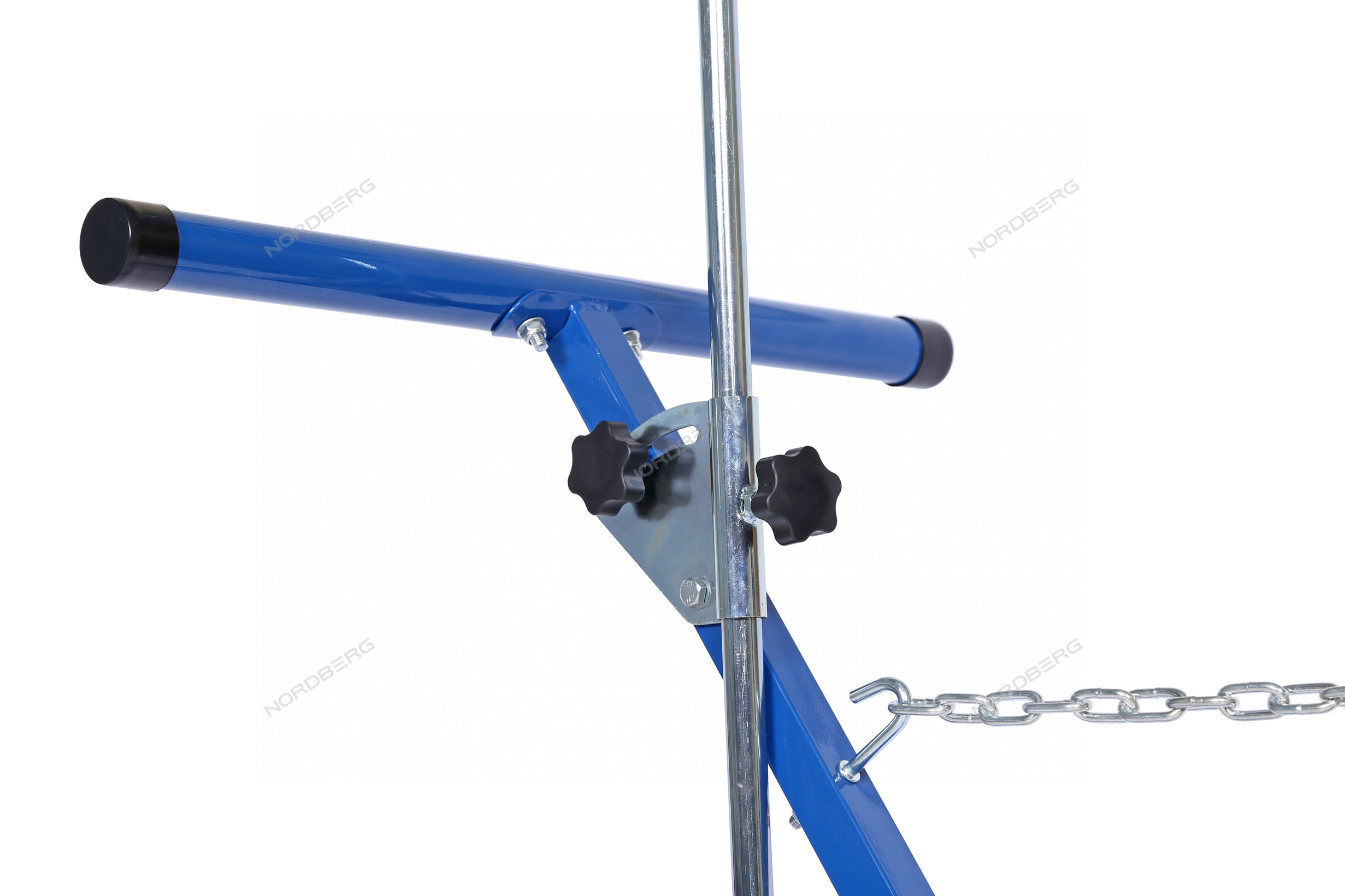 Складной механизм стенда позволяет производить различные регулировки по высоте и ширине захвата детали, а также экономить место для хранения