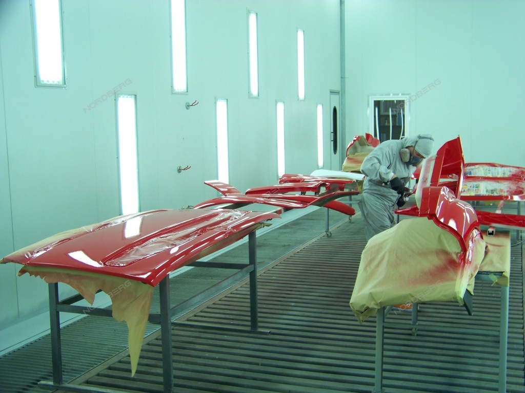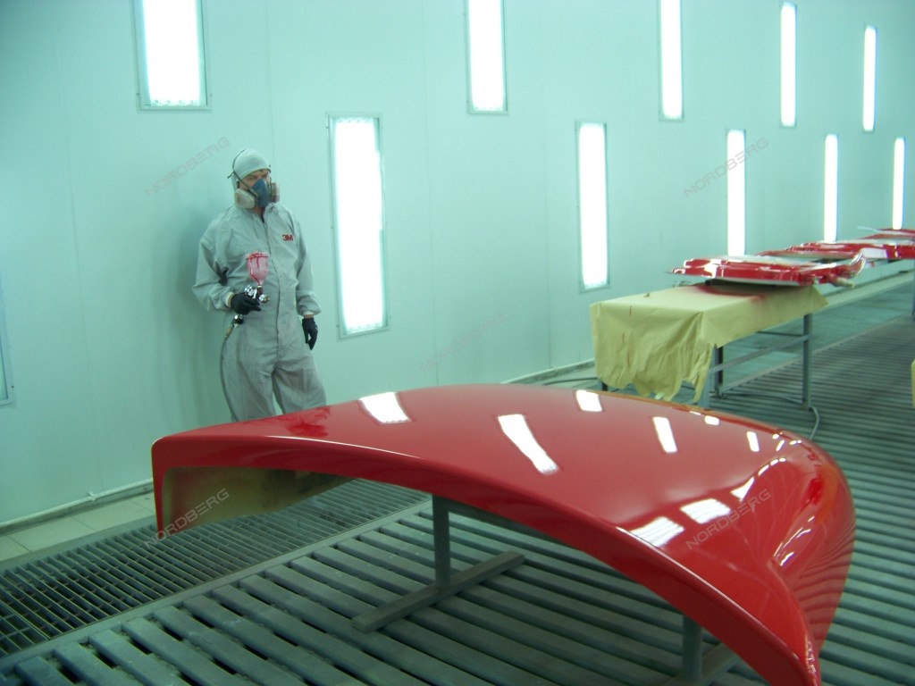 В камере поддерживается постоянная температура +60≈80⁰С в зависимости от применяемой краски и установленных пластмассовых деталей автомобиля.