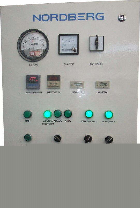 Управляющее реле. Режимы работ: окраска, окраска с подогревом, сушка. Выключатели освещения, таймер сушки, температурное реле, таймер, аварийное отключение, индикатор ошибок, датчик давления. Температурный контроллер японской компании с функцией сохранения параметров.