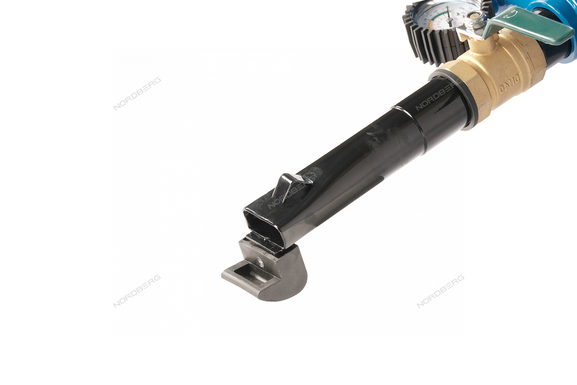 Приставьте сопло бустера к щели между бортом шины и ободом диска, и резко откройте шаровой вентиль.