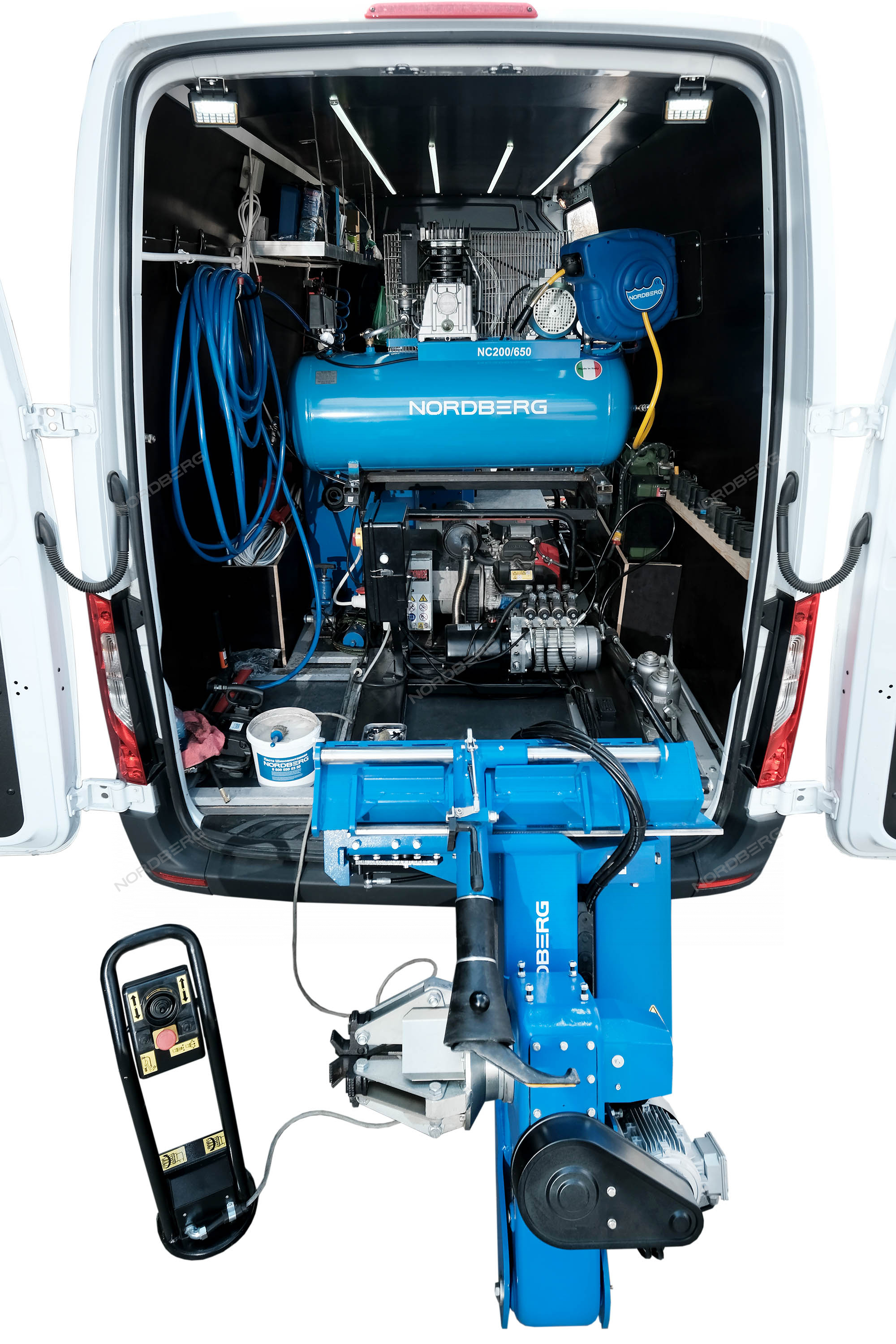 Мобильный грузовой шиномонтажный станок Nordberg 46TRKM для выездного обслуживания колес грузовых автомобилей, автобусов, сельскохозяйственной и спецтехники с диаметром обода 13"-26" и весом до 700 кг