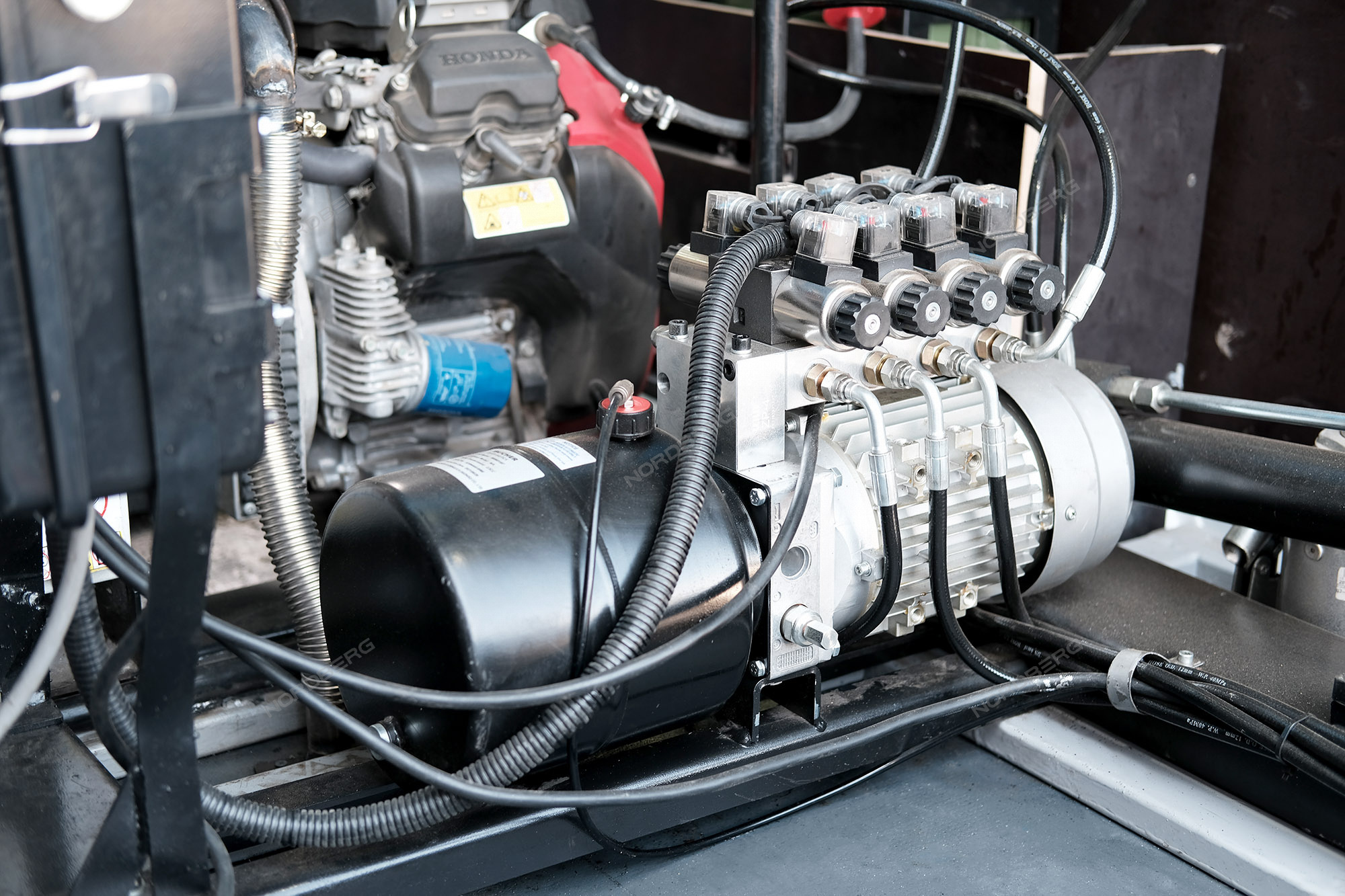 Станок оборудован ручным насосом для перемещение станка внутрь фургона в случае отключение электропитания