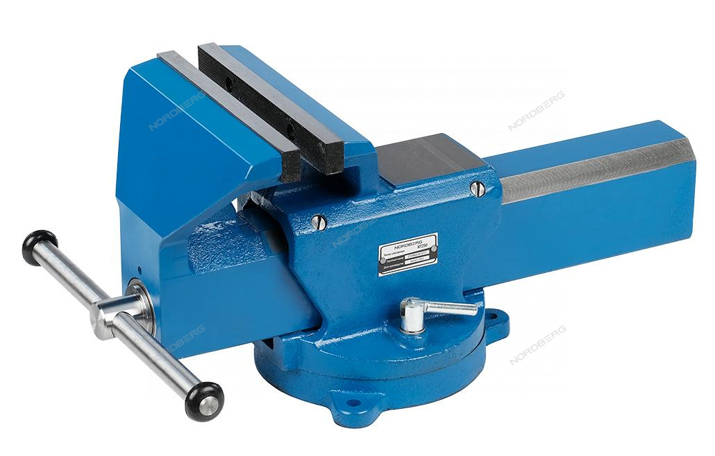 Основание тисков имеет поворотный механизм, благодаря которому корпус тисков можно разворачивать на 360°