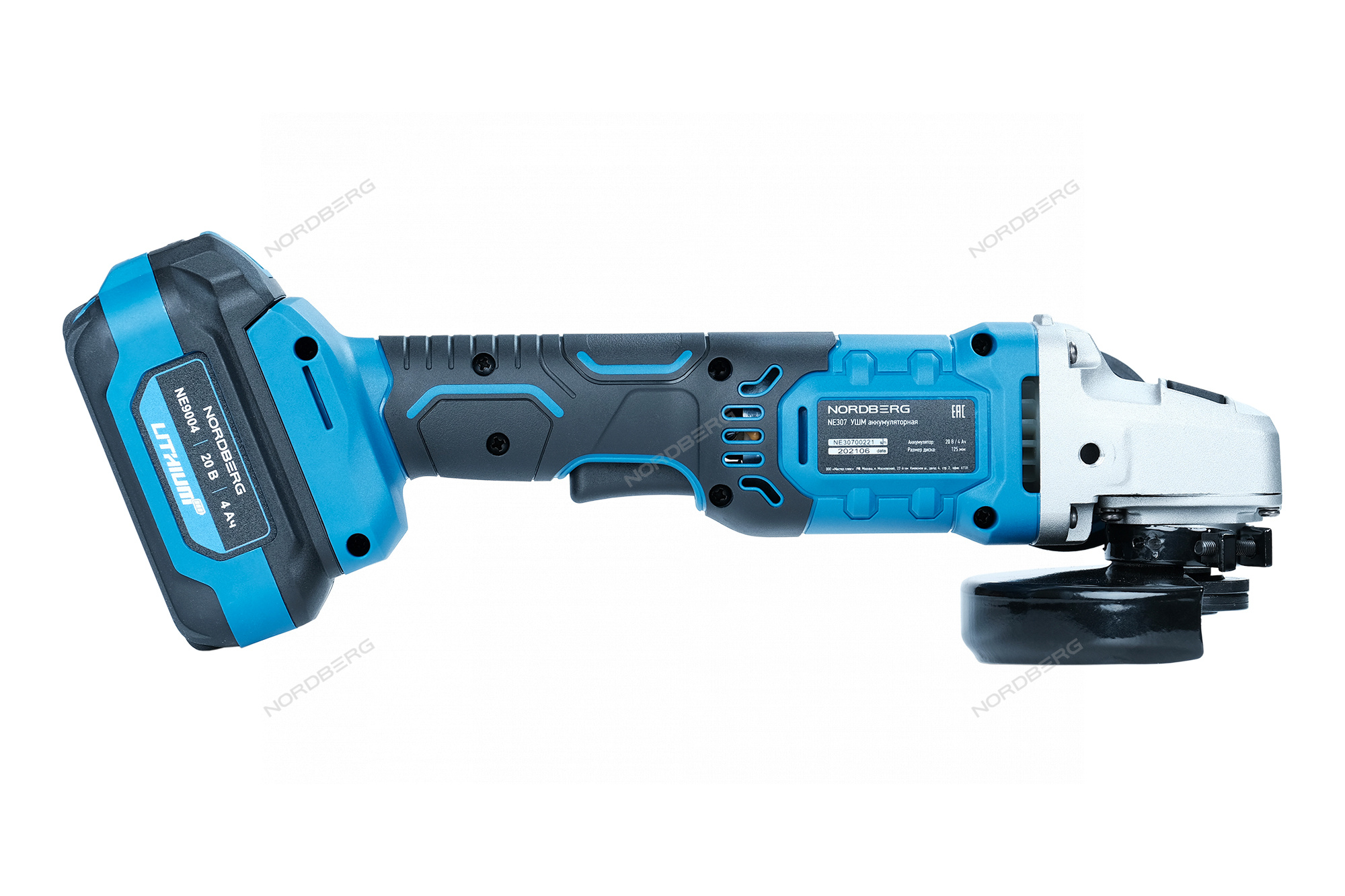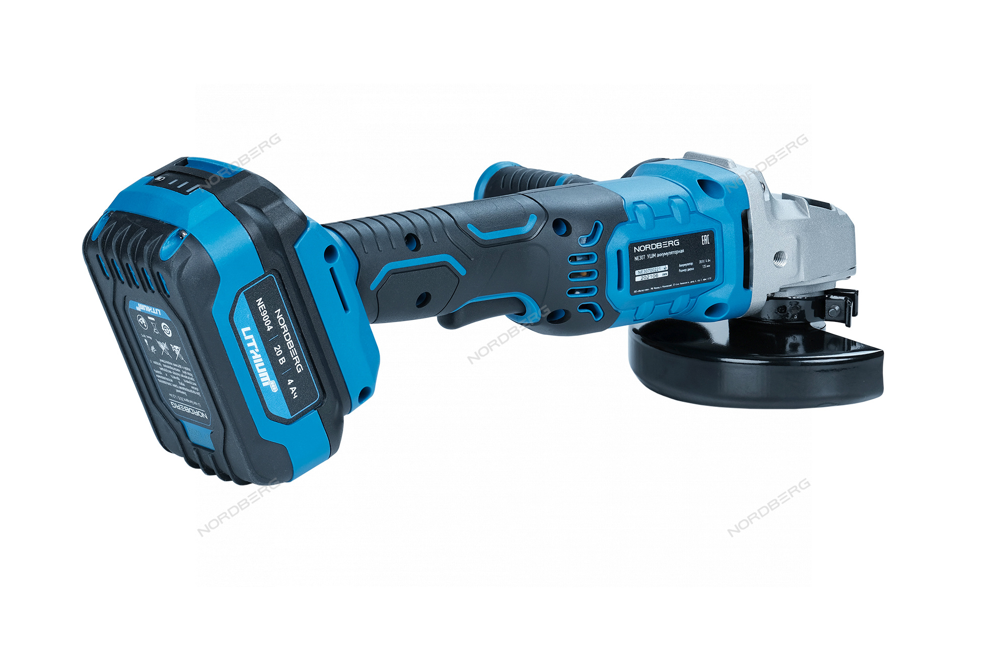 УШМ аккумуляторная, Ø диска 125 мм, 20В, с аккумулятором и зарядным устройством NORDBERG NE307K