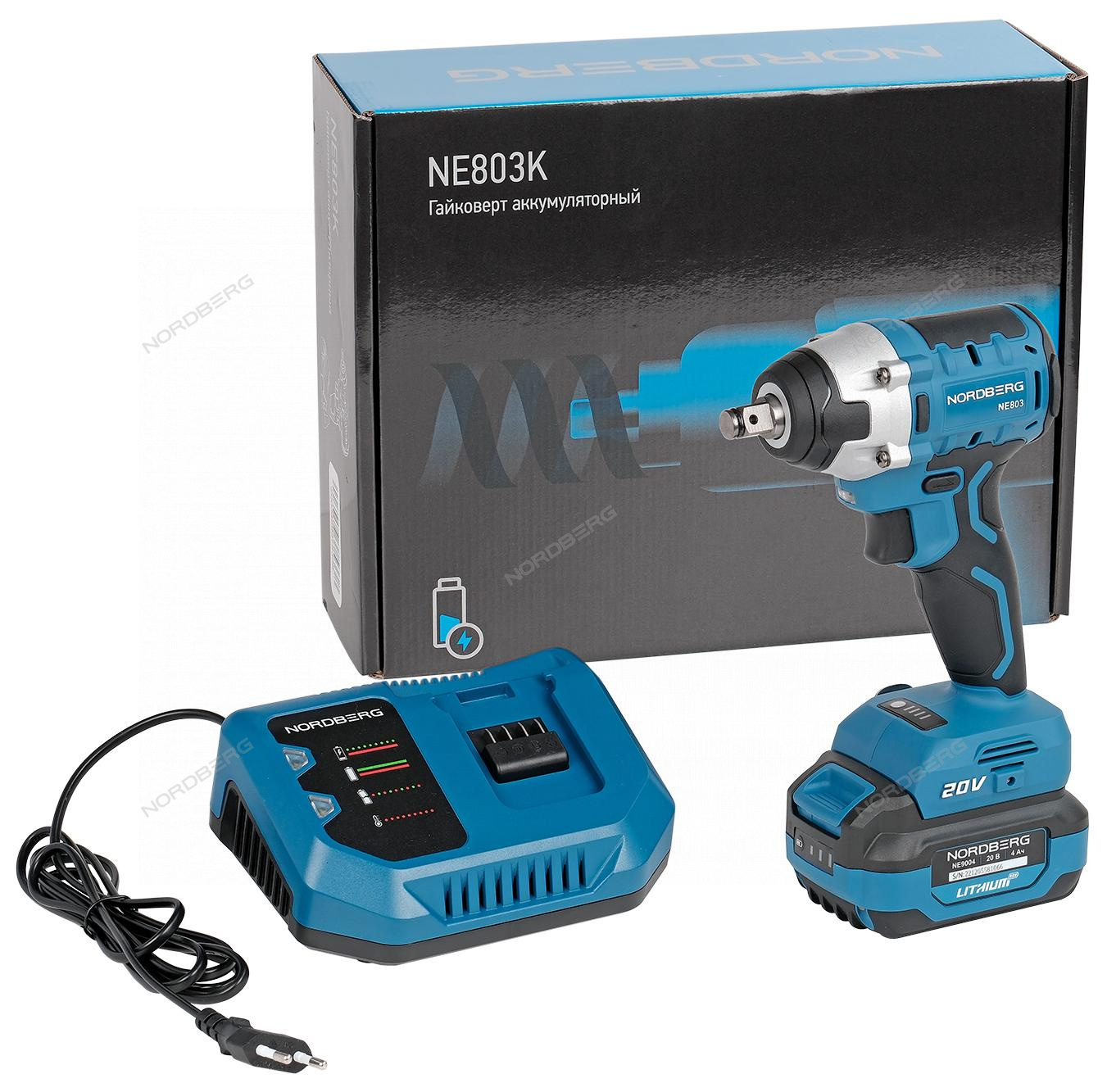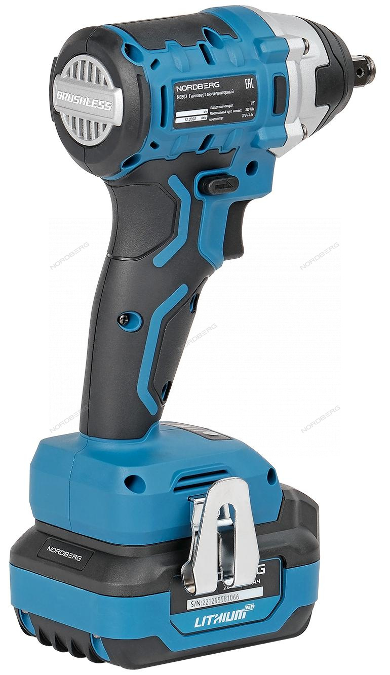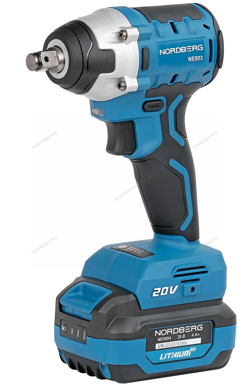 Гайковерт аккумуляторный, 1/2", 20В, 300Нм с 4A акк. и зар. уст-вом 4A, в мешке NORDBERG NE803K