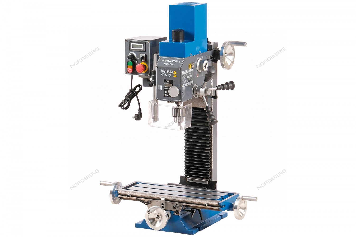 Сверлильно-фрезерный станок NORDBERG NDM2037 – универсальный настольный станок, предназначенный для фрезерования, сверления, нарезания резьбы и других видов механической обработки металлов, полимерных материалов и т. д.